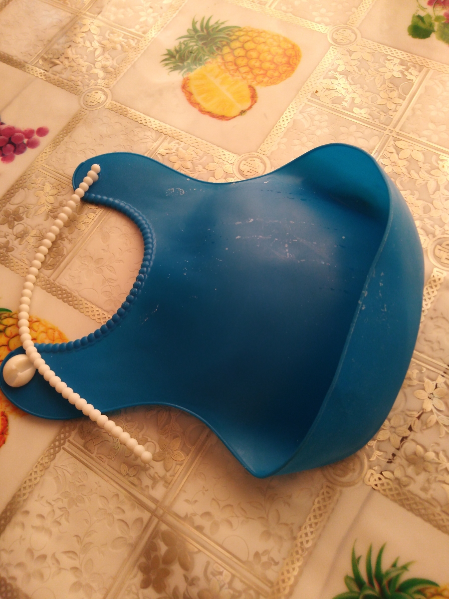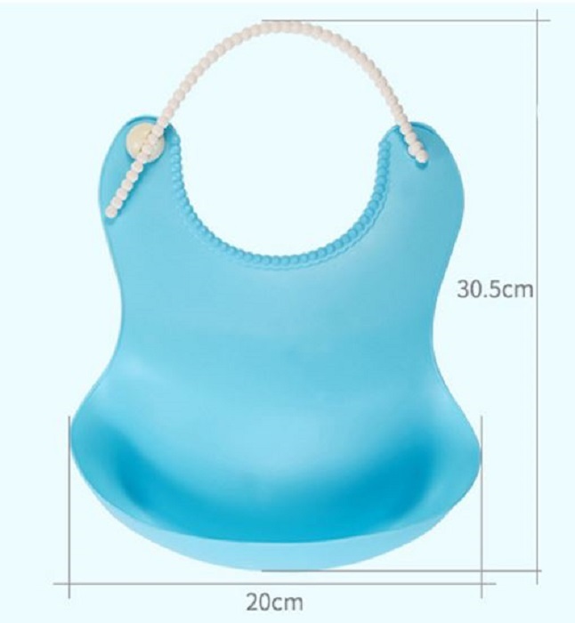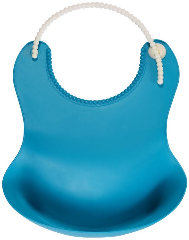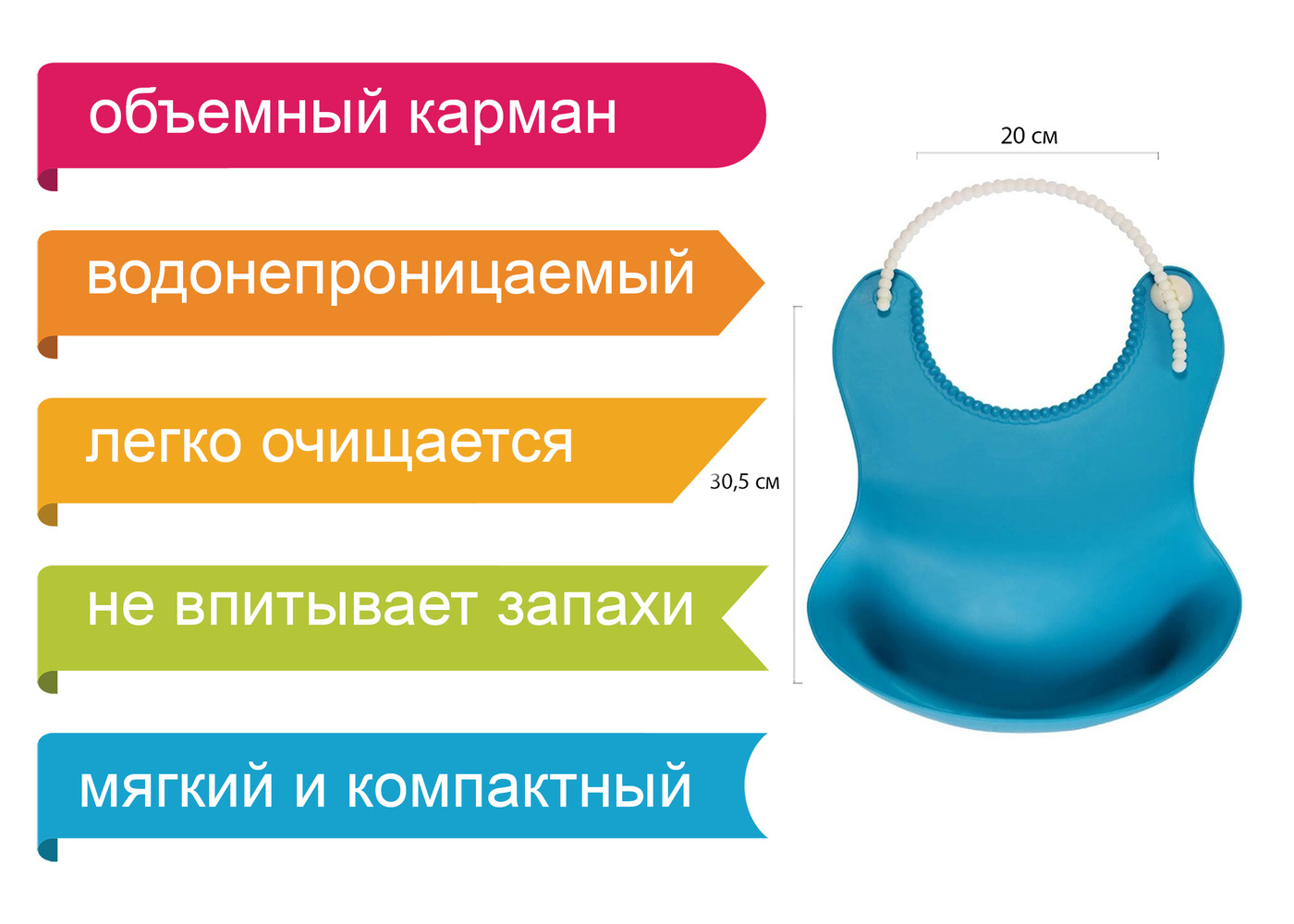 НИКУСИКИ/ Слюнявчик силиконовый детский, нагрудник водонепроницаемый с карманом, синий, 30,5х20 см