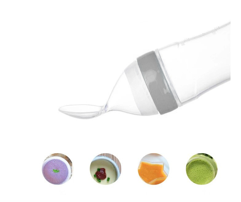 НИКУСИКИ/ Бутылочка для кормления с ложечкой, мерной шкалой и присоской, объем 90мл, белая