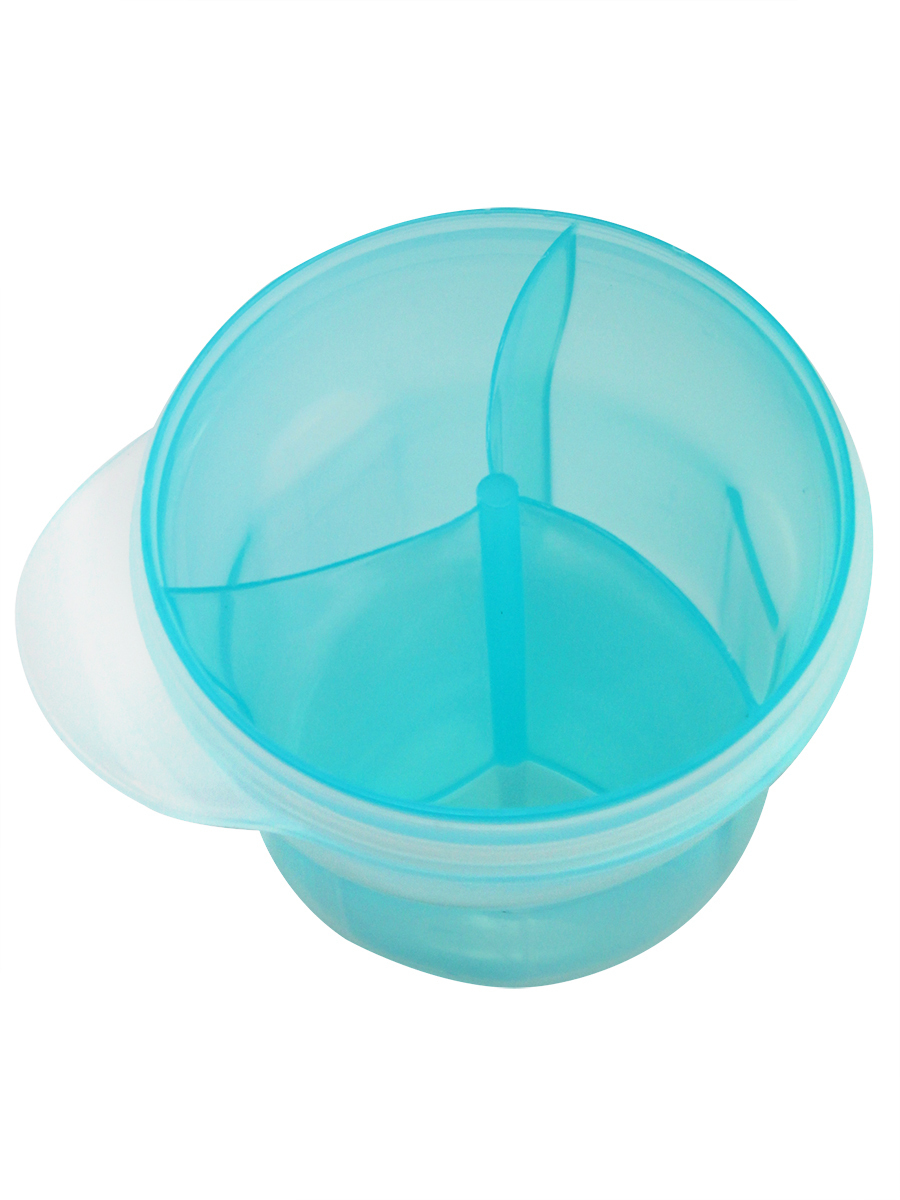 НИКУСИКИ / Контейнер (дозатор) для детской сухой смеси с тремя отсеками, голубой , высота 8 см , объем 240 мл