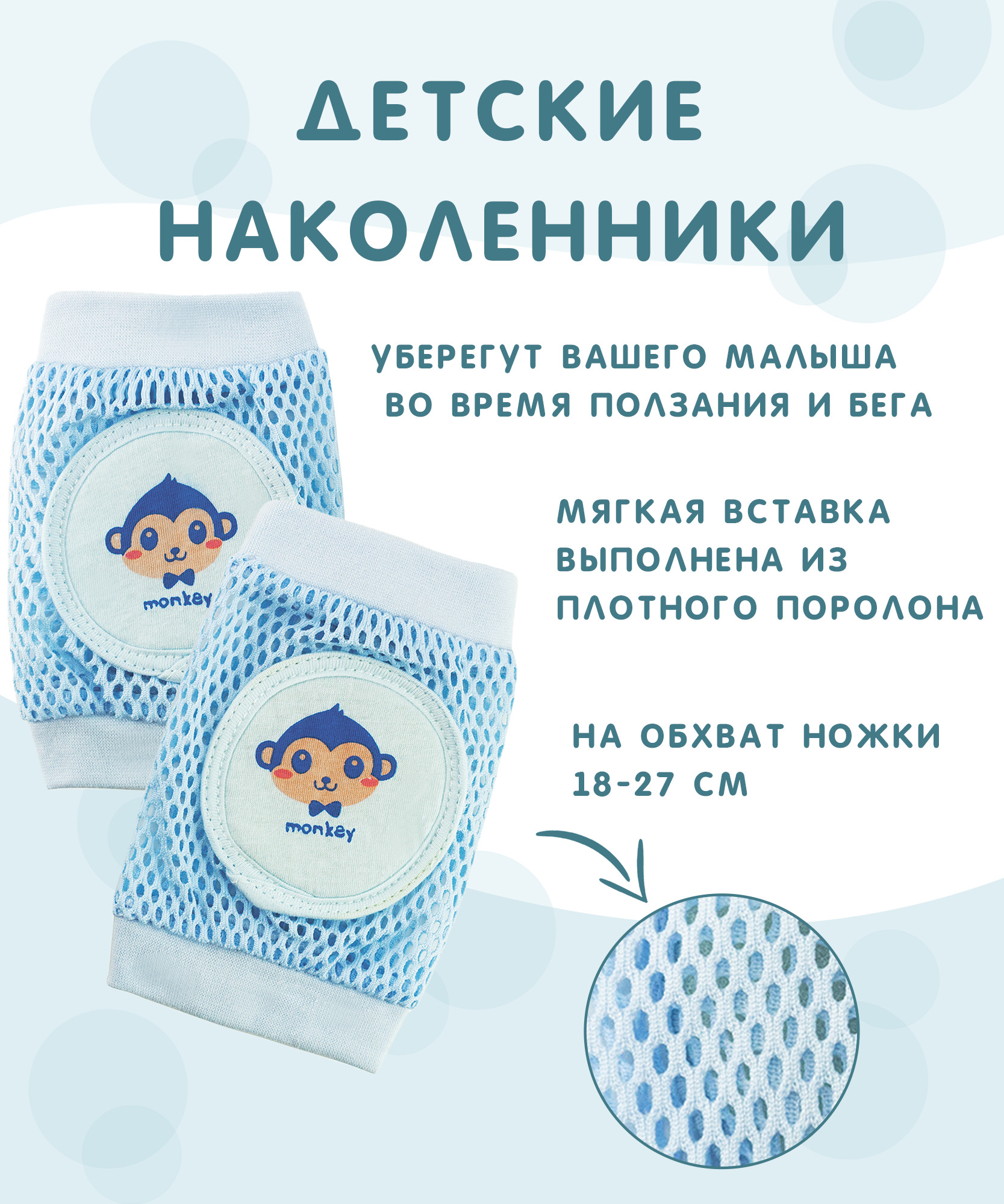 НИКУСИКИ/ Детские защитные наколенники для ползания в сеточку, защита детей от падения, обезьянка, голубые