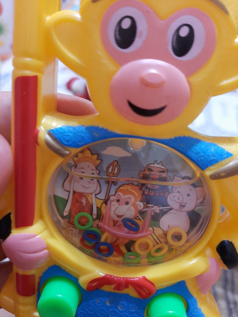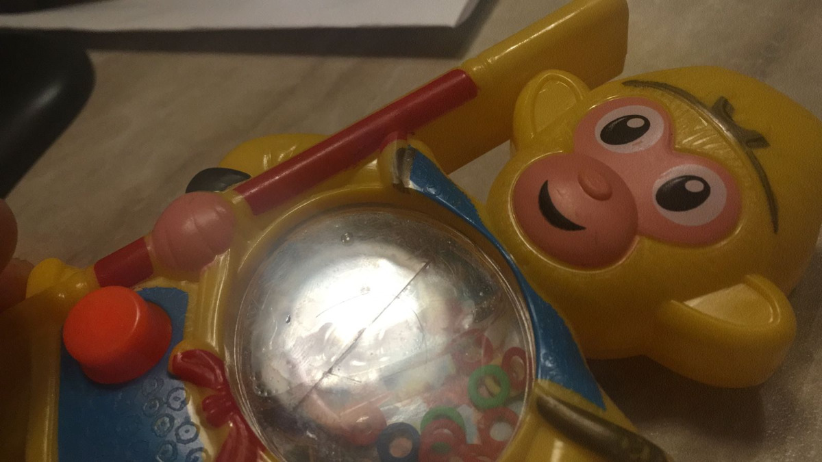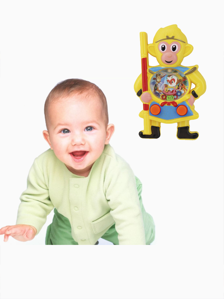 НИКУСИКИ / Детская игрушка с колечками для ванной, водный тетрис, Обезьянка, оранжевые кнопки, размер 14x9 см