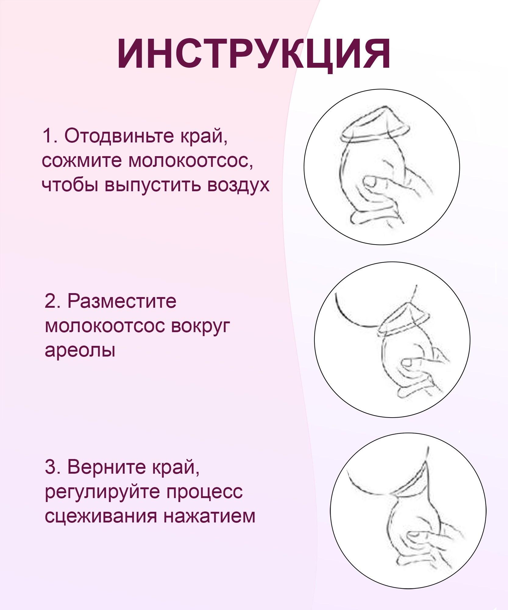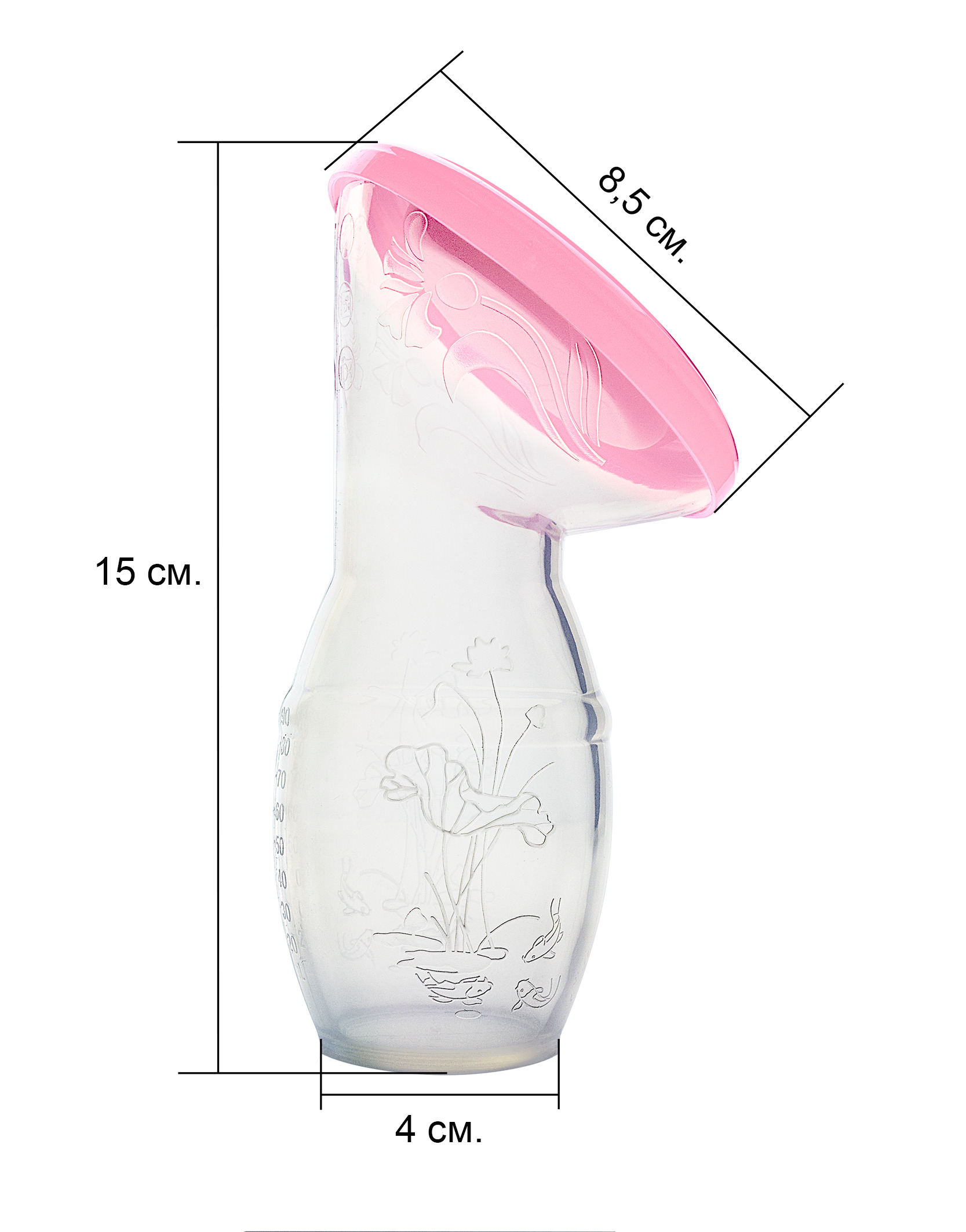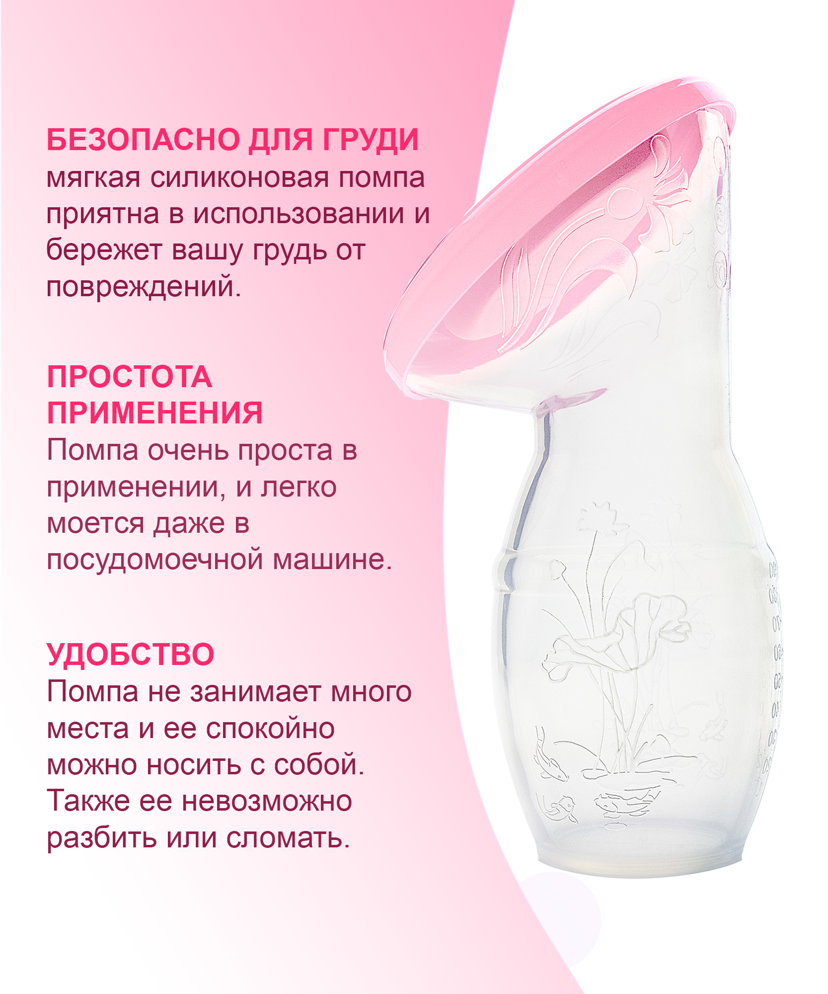 НИКУСИКИ/ Молокоотсос ручной для сбора и хранения грудного молока, силиконовый механический молокоотсос, розовый