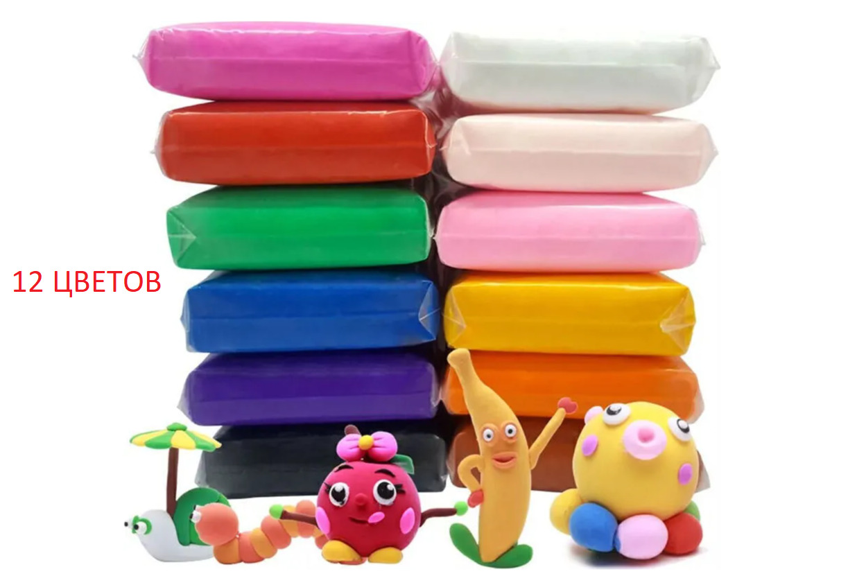 НИКУСИКИ / Пластилин лёгкий, мягкий, воздушный для лепки и творчества 12 штук в индивидуальной упаковке. (12 цветов)