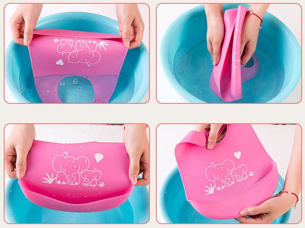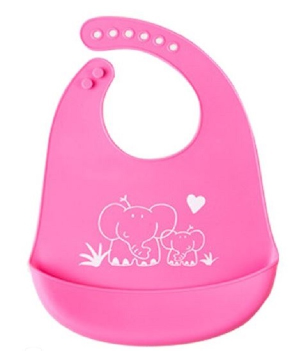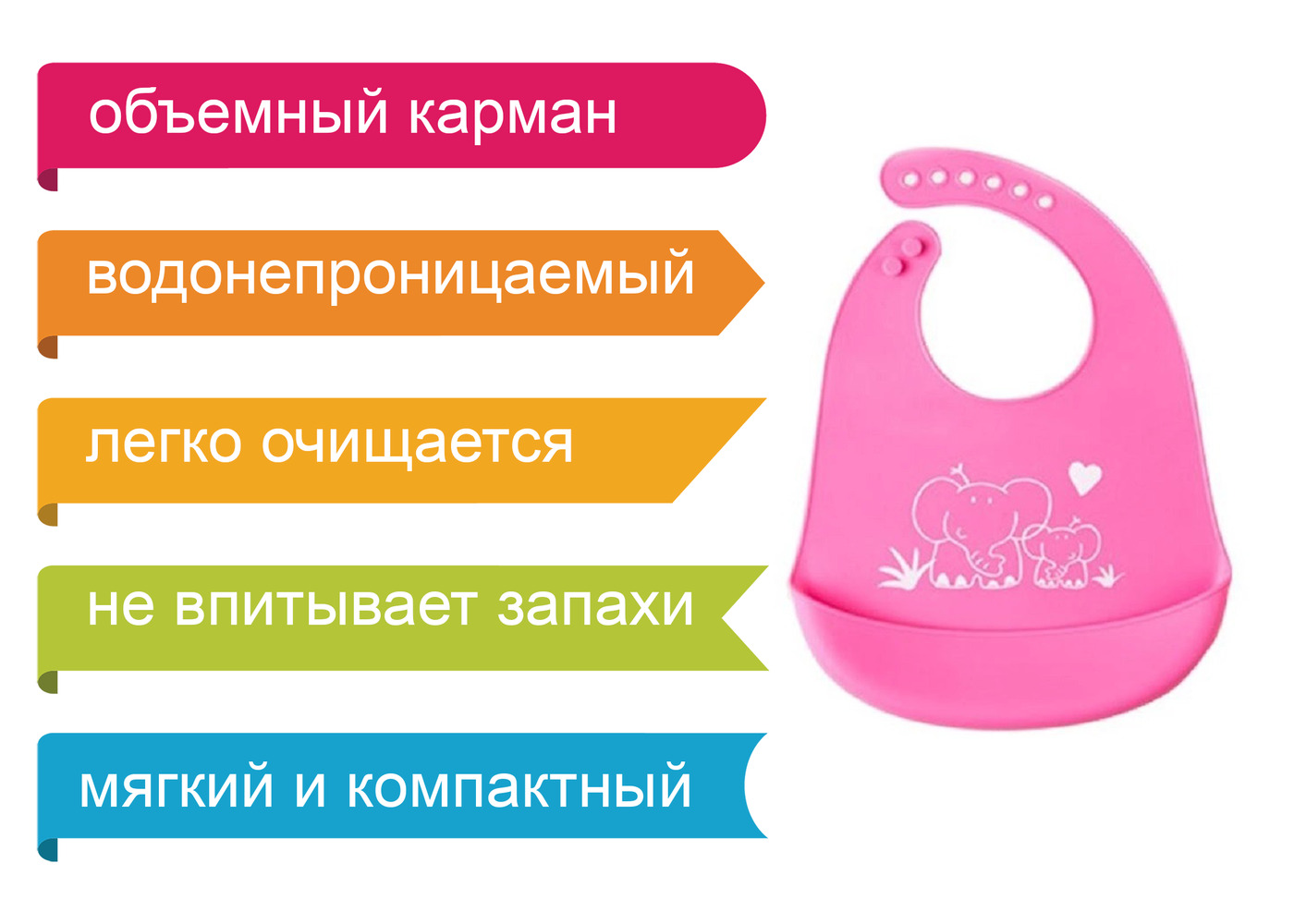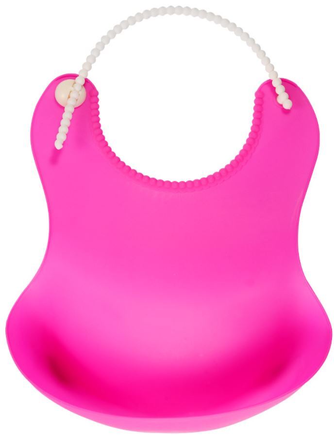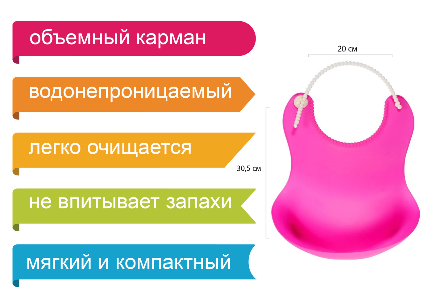 НИКУСИКИ/ Слюнявчик силиконовый детский, водонепроницаемый нагрудник, слюнявчик, нагрудник, розовый, 30,5х20 см