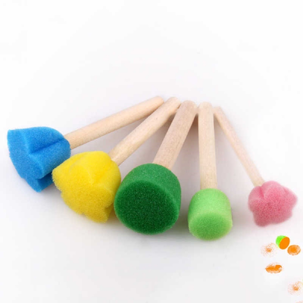 НИКУСИКИ/ 5 шт/ Губки для рисования круглые, кисти для рисования, кисть-губка поролоновая с деревянной ручкой, разноцветные