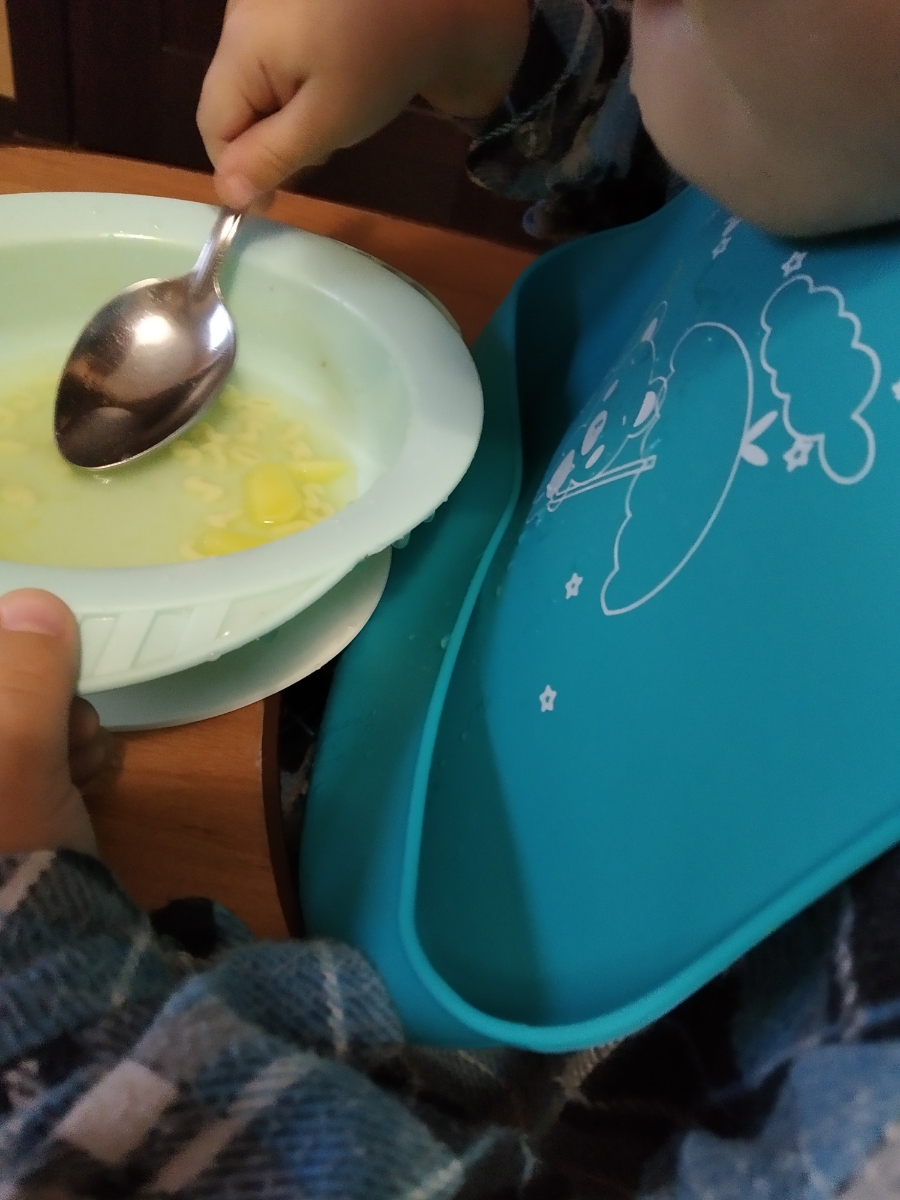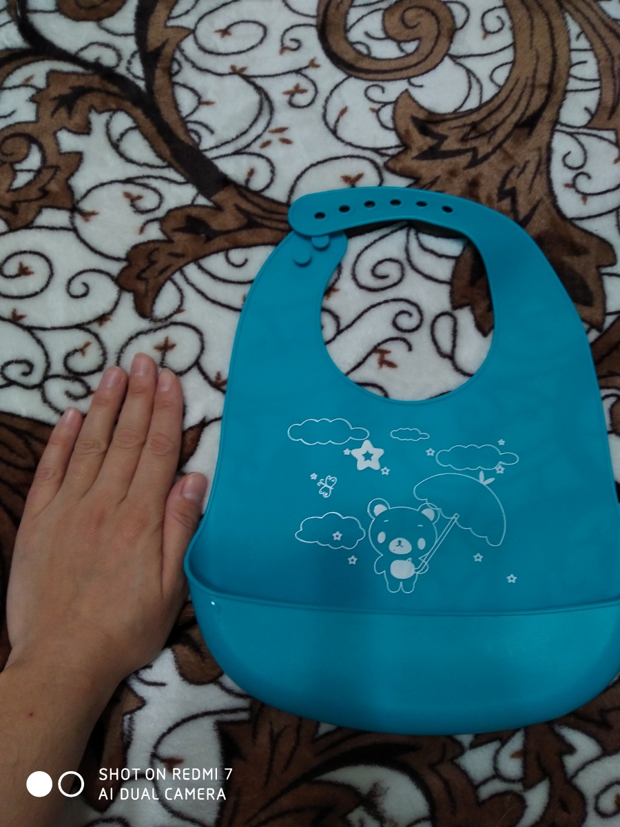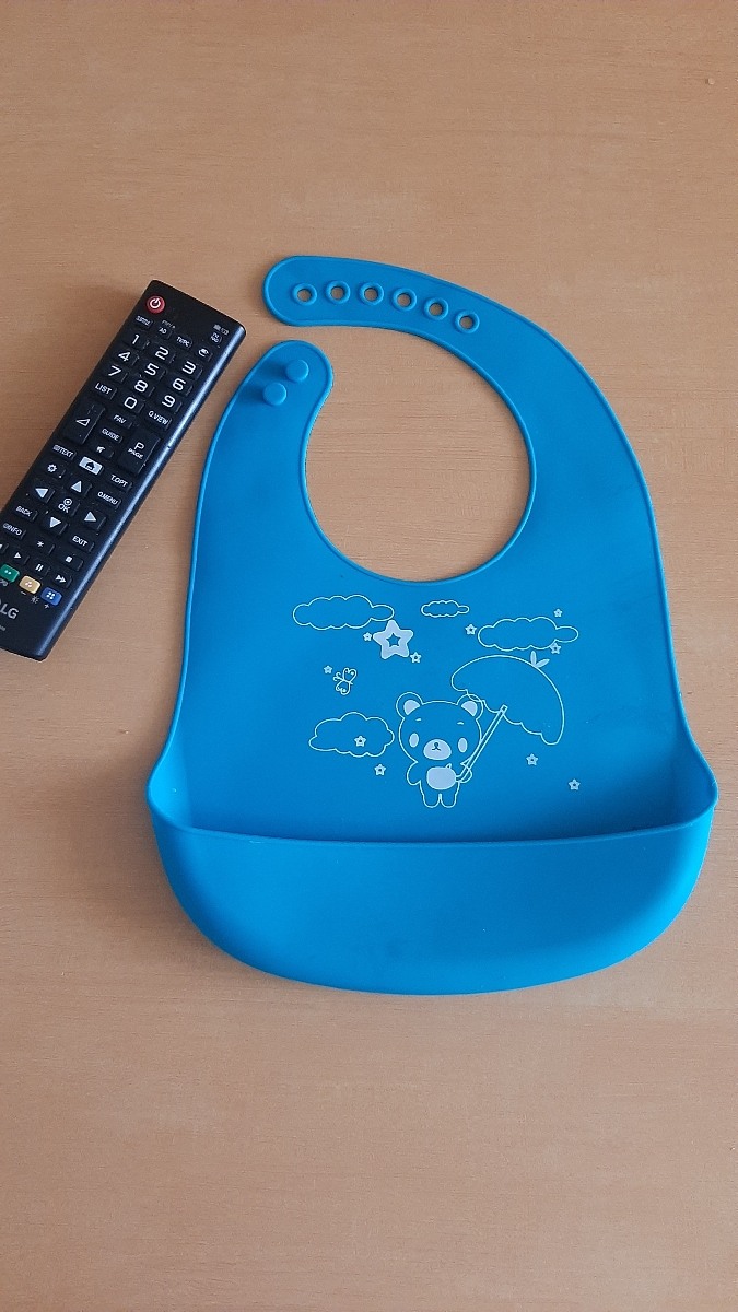 НИКУСИКИ/ Слюнявчик силиконовый детский, нагрудник водонепроницаемый с карманом, синий, 30,5х20 см