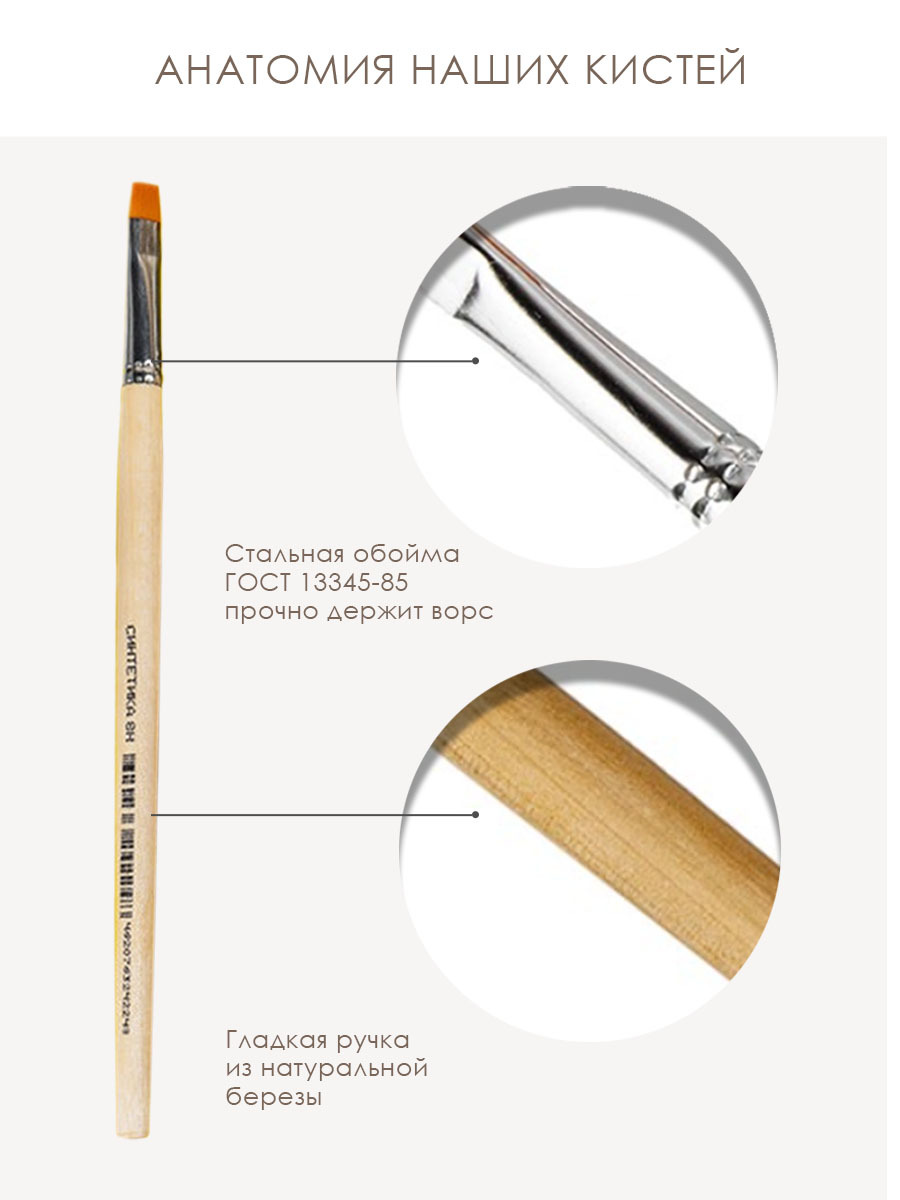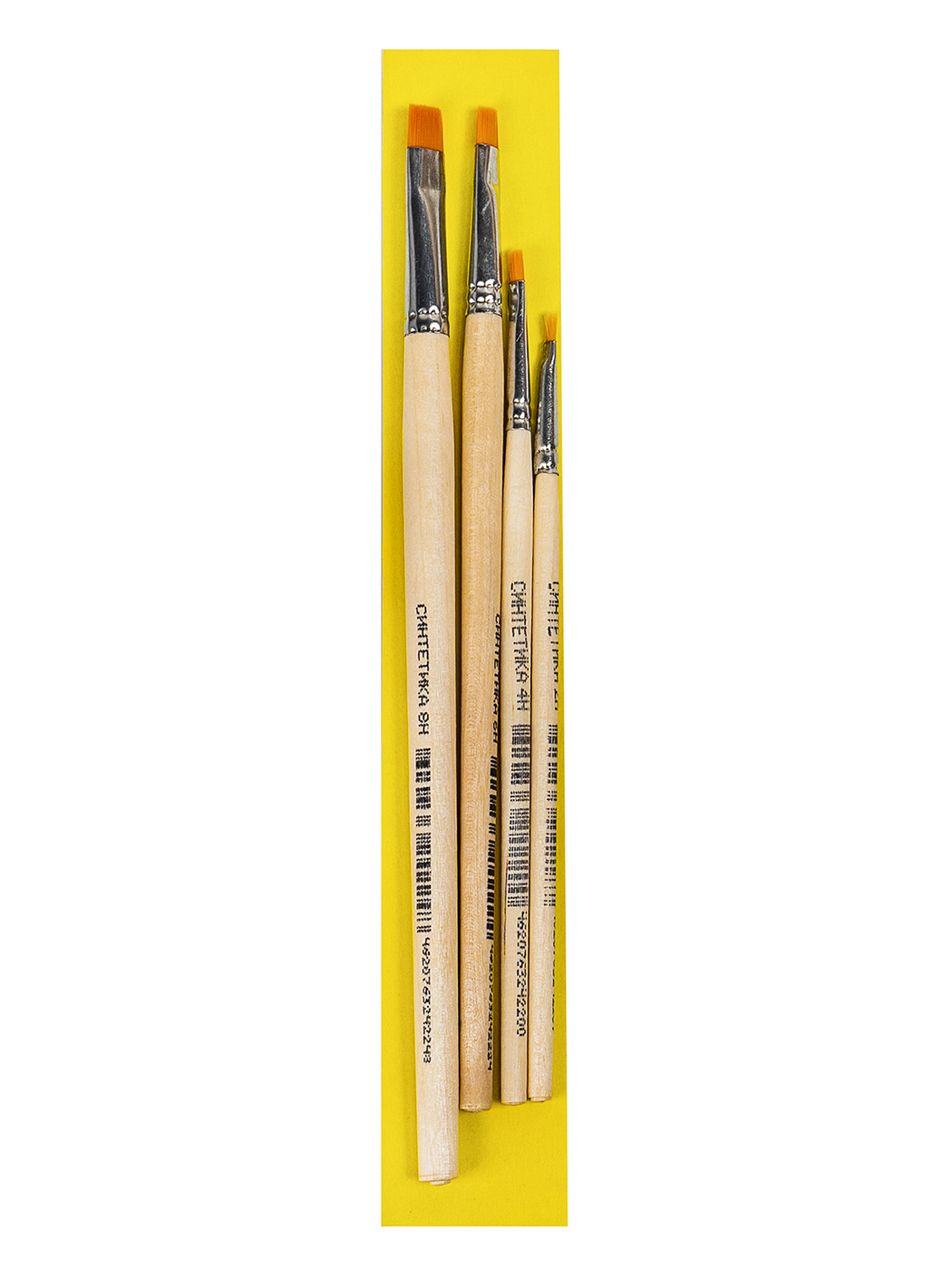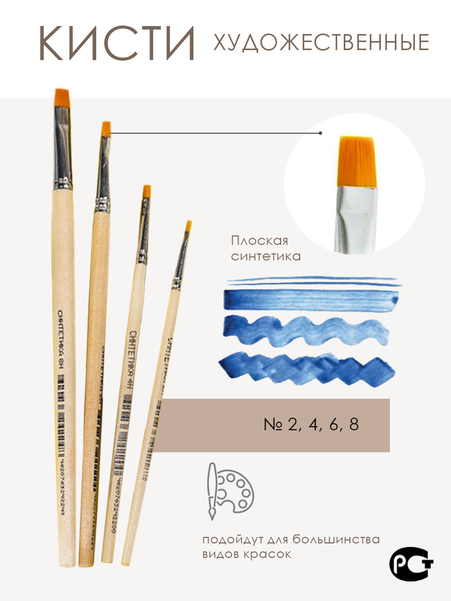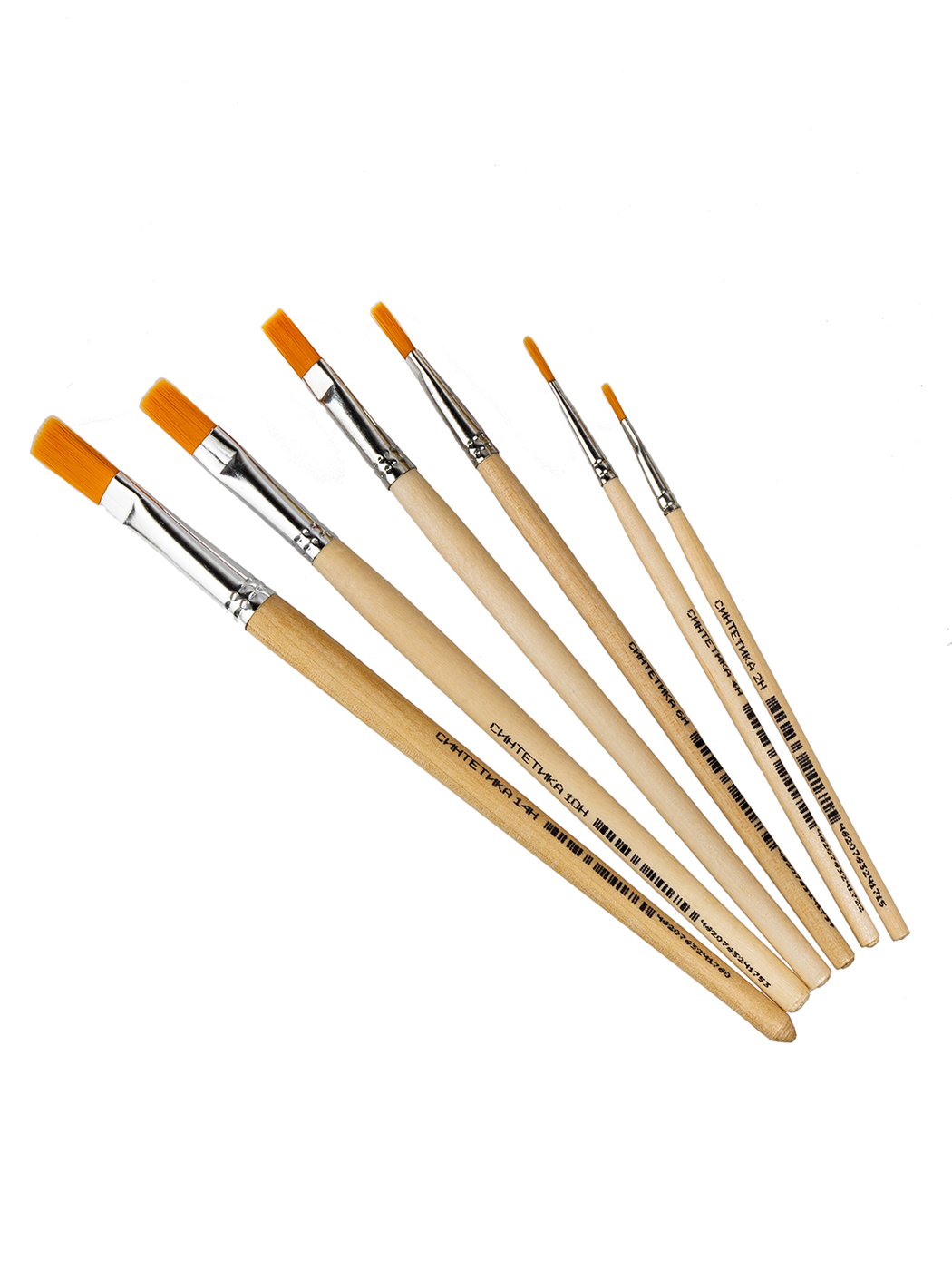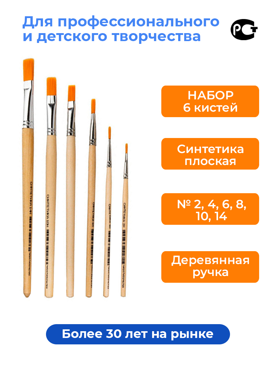 Кисти / Кисточки для рисования НИЛ набор из 6 шт., ( Синтетика плоская № 2, 4, 6, 8, 10, 14)