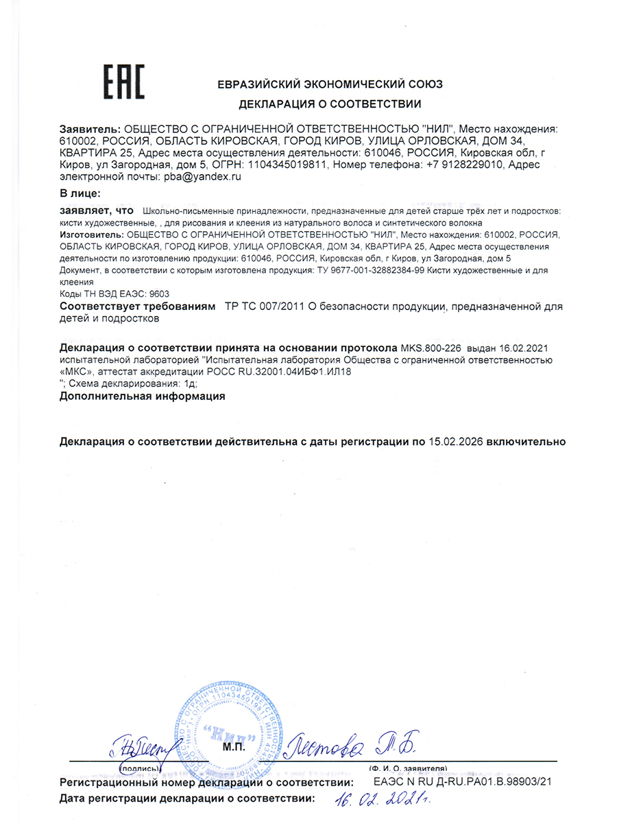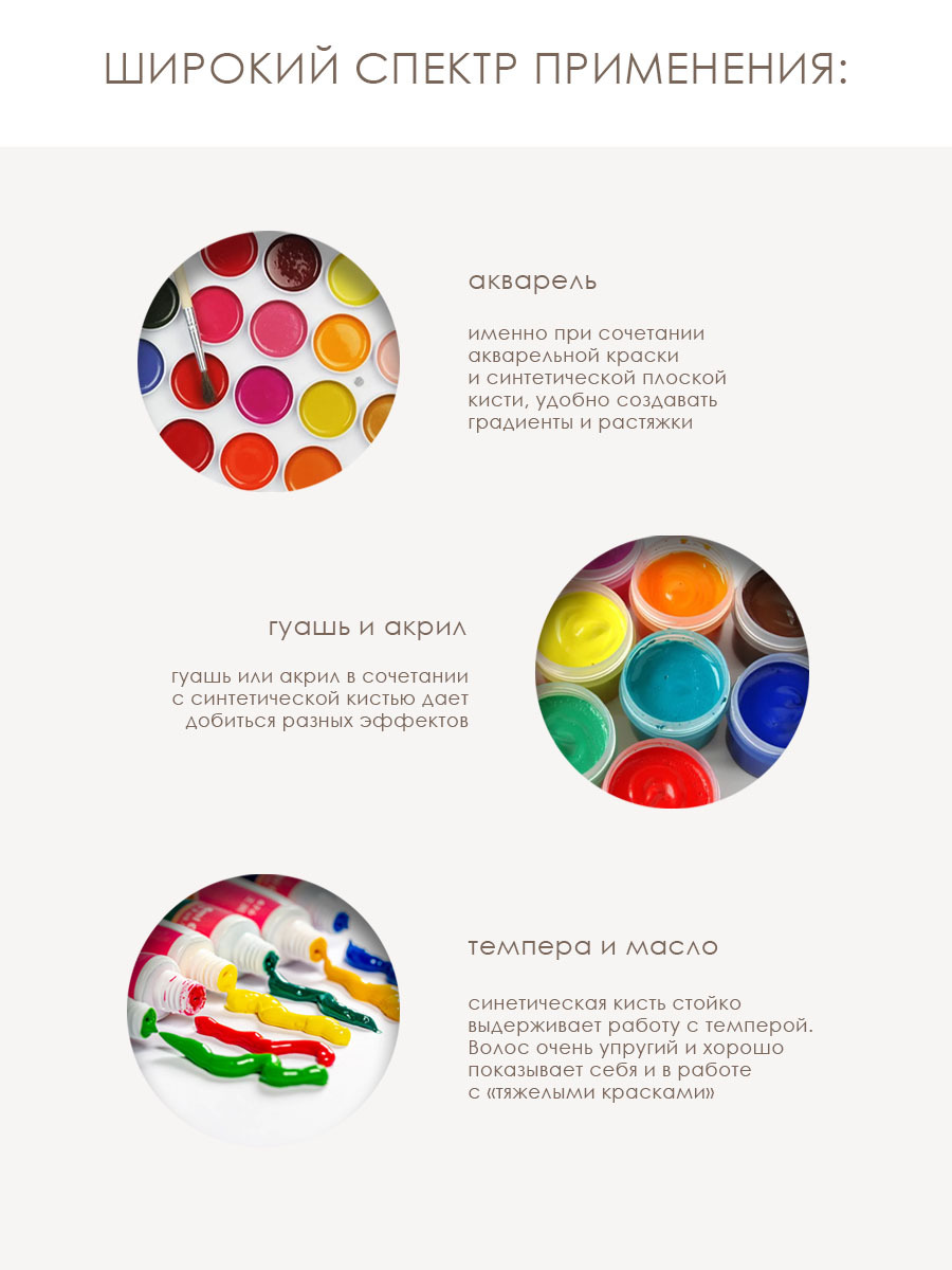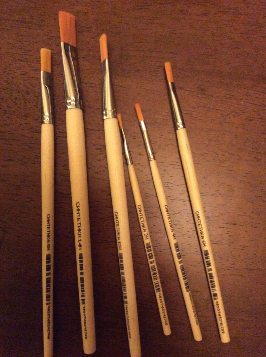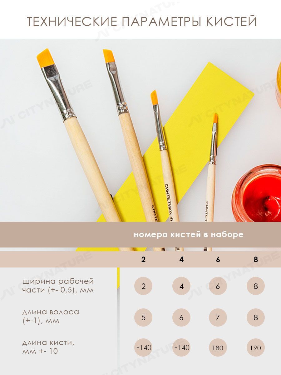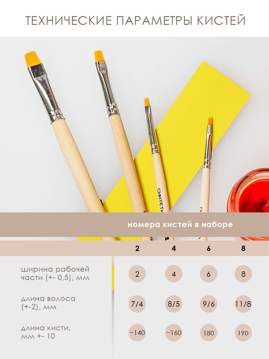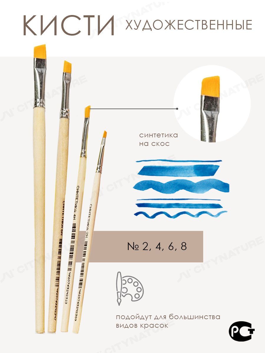 Кисти / Кисточки для рисования НИЛ набор из 6 шт., ( Синтетика плоская № 2, 4, 6, 8, 10, 14)