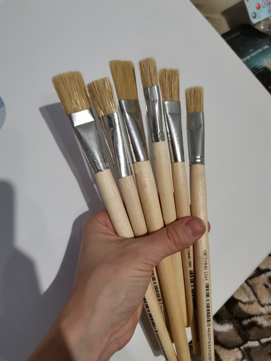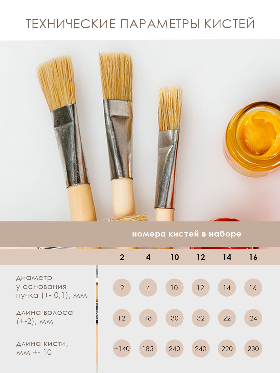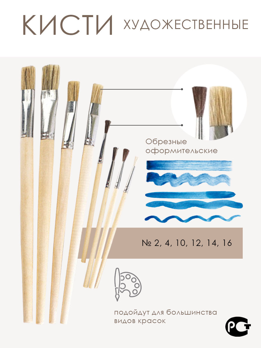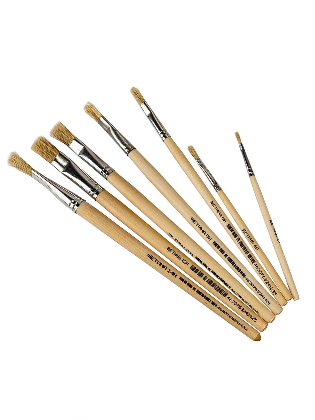 Набор Кистей ЩЕТИНА ПЛОСКАЯ 7 штук (№ 2, 4, 6 ,8, 10, 12, 14)