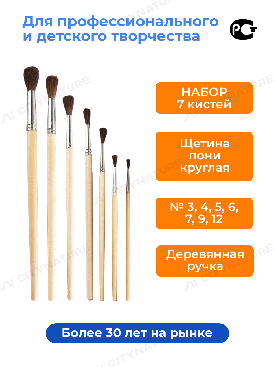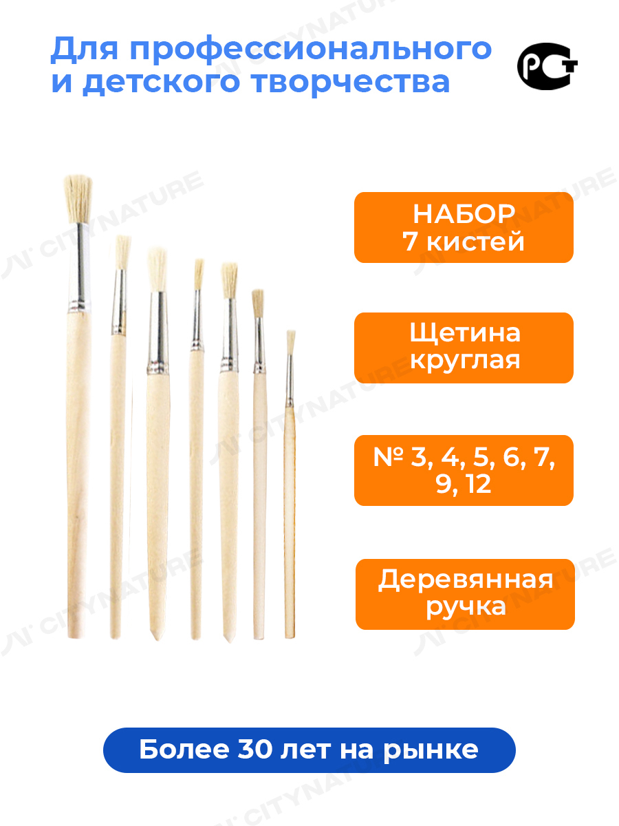 Набор Кистей СИНТЕТИКА КРУГЛАЯ 7 штук (№ 1, 2, 3, 4, 5, 6, 7)