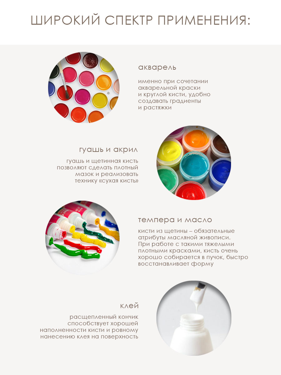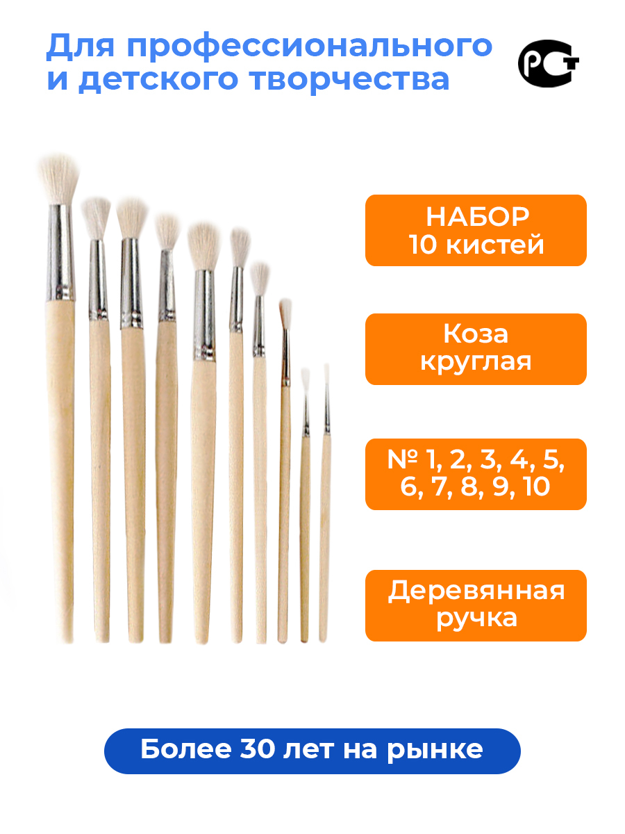 Набор Кистей КОЗА КРУГЛАЯ 10 штук (№ 1, 2, 3, 4, 5, 6, 7, 8, 9, 10)