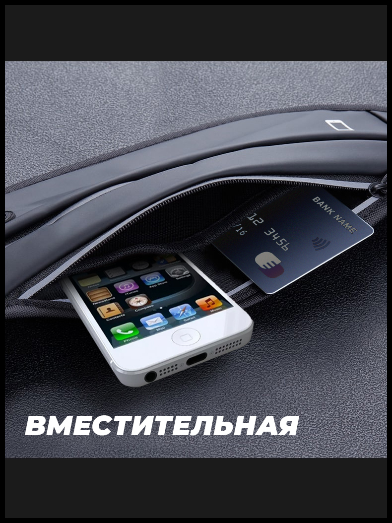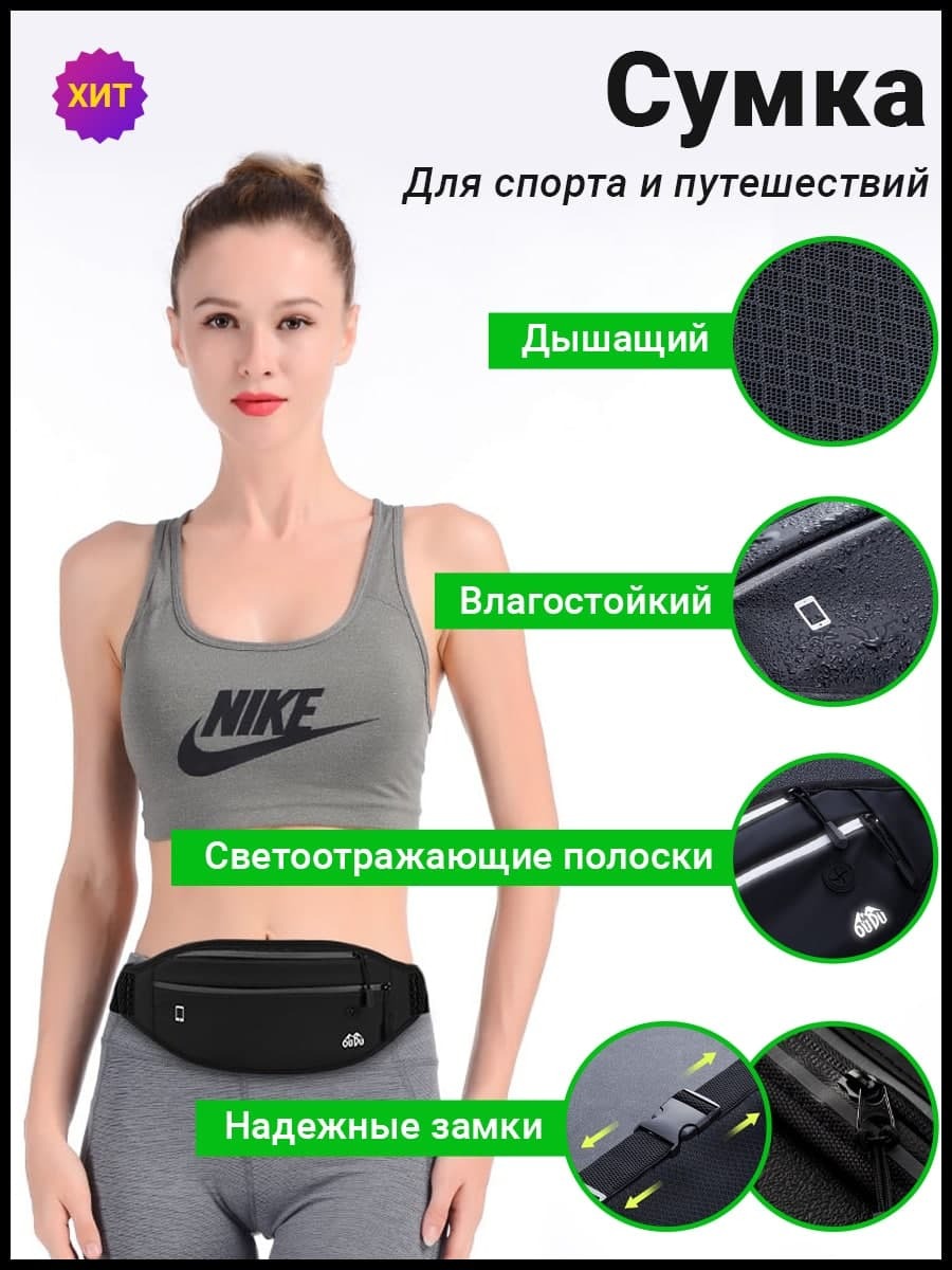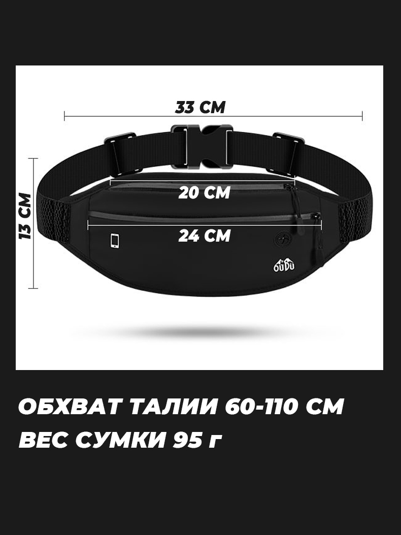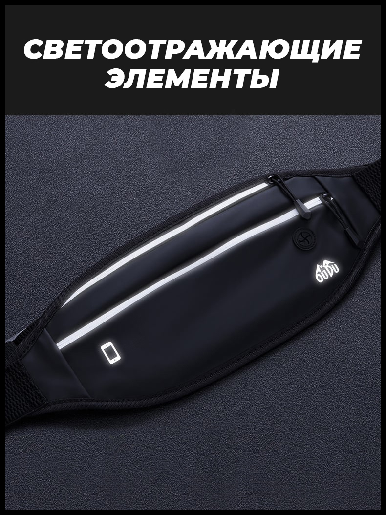 Сумка для бега на пояс. Сумка поясная спортивная для смартфона и документов. Ремень для бегуна.Поясная сумка для телефона,черный.