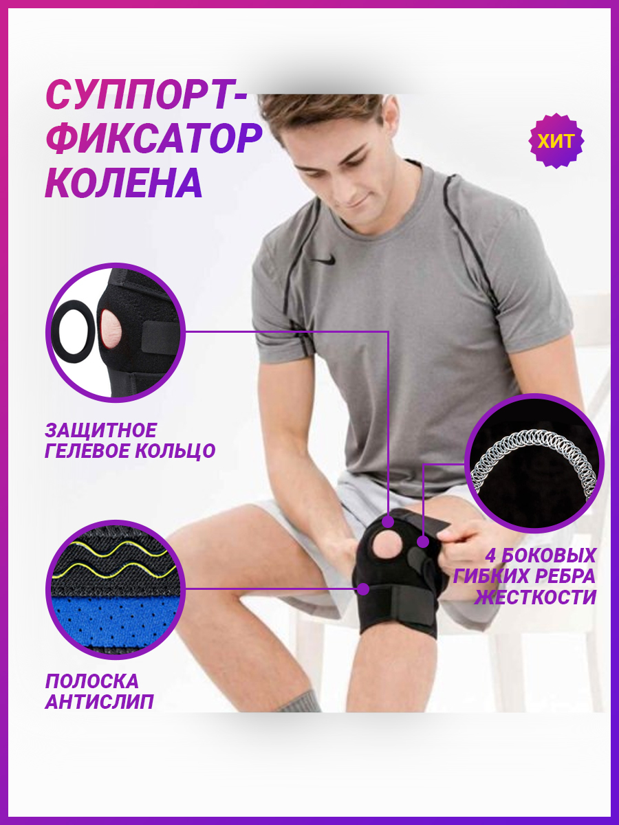 Наколенник компрессионный/Бандаж на коленный сустав профессиональный/Ортез на коленный сустав/Суппорт фиксатор колена