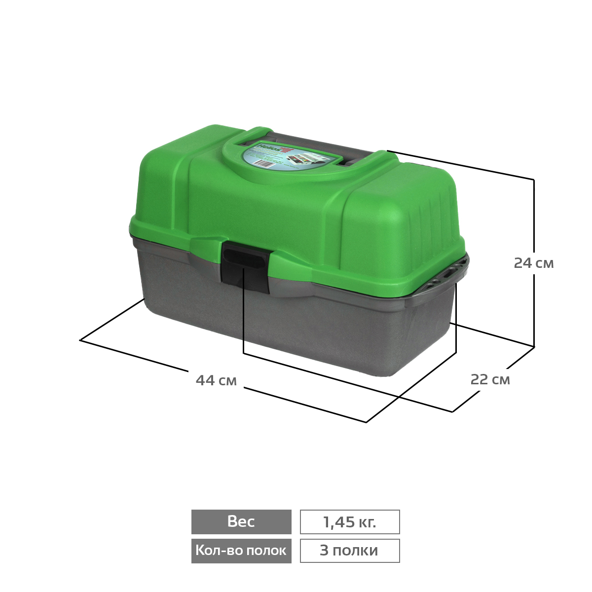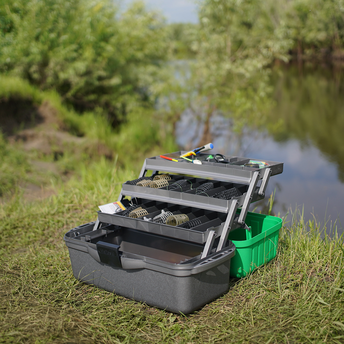 Ящик для летней рыбалки трехполочный зеленый Helios