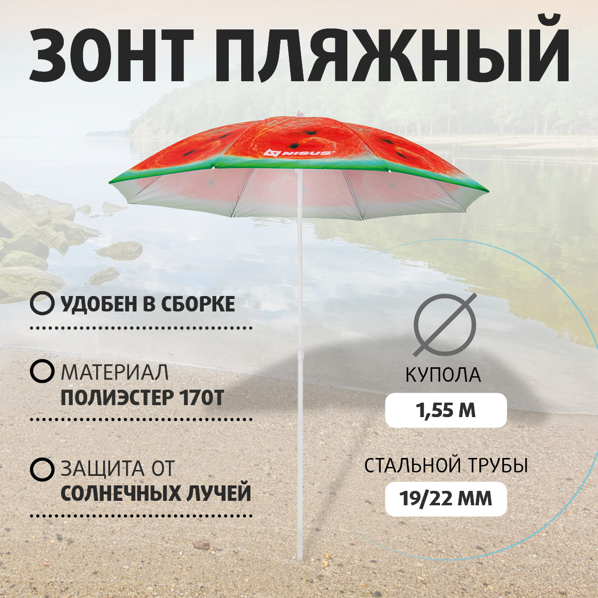 Зонт пляжный d 1,8м с наклоном Арбуз (19/22/170Т) N-BU1907-180-W NISUS