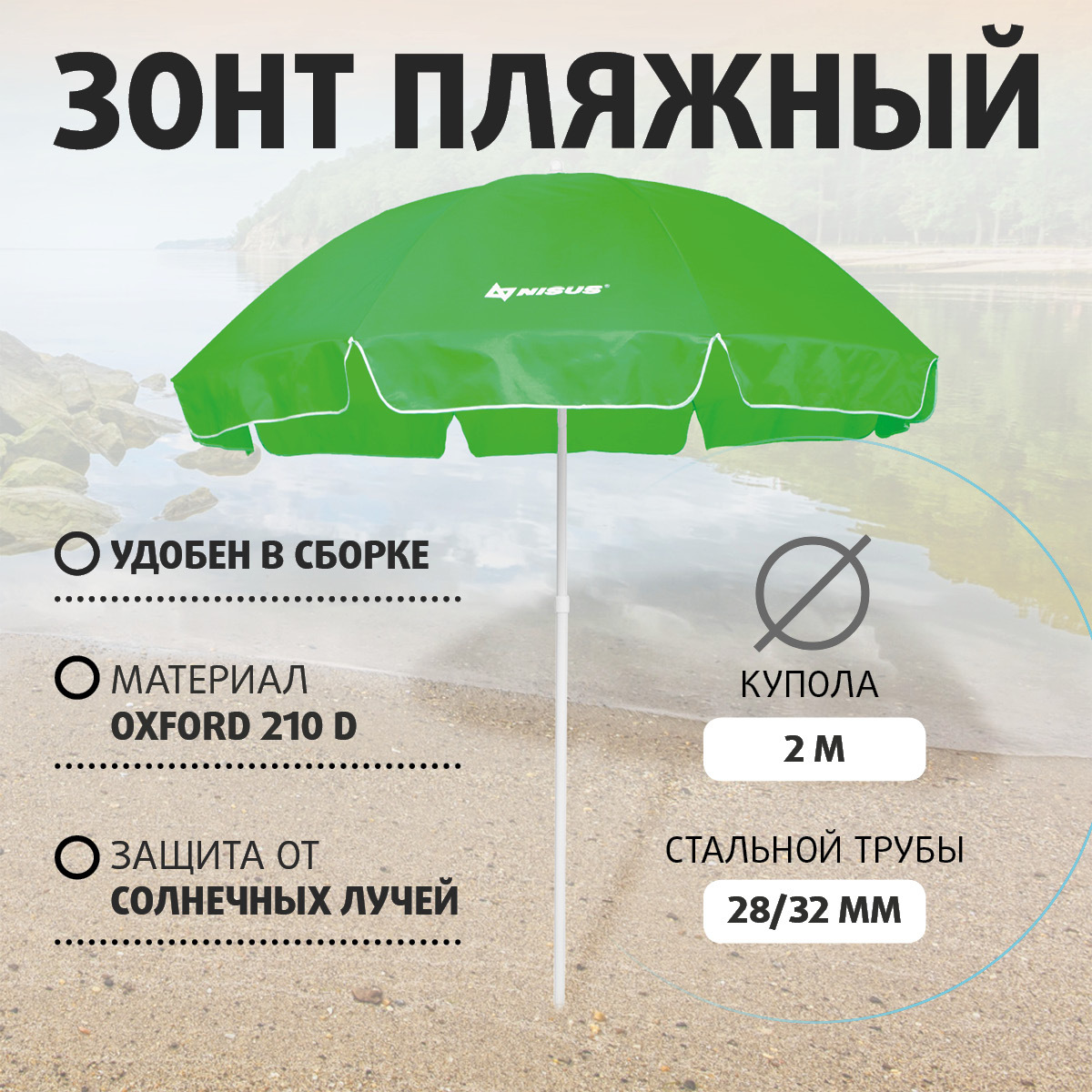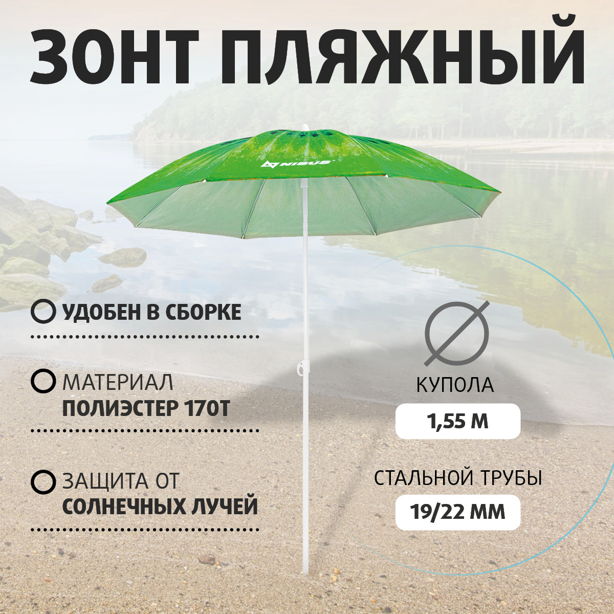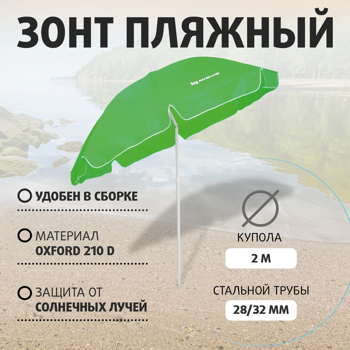 Зонт пляжный d 2,4м прямой (28/32/210D) N-240 NISUS