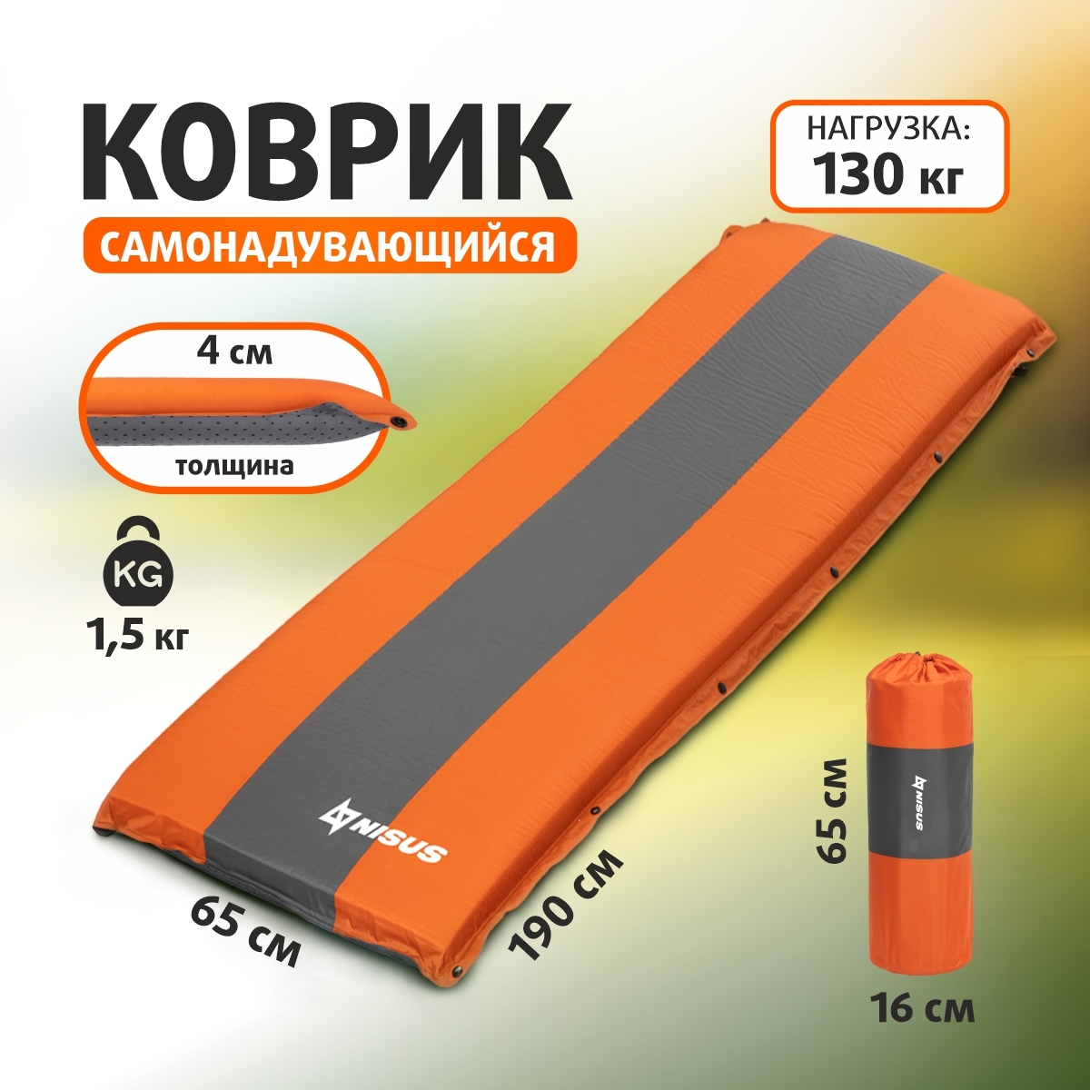 Коврик самонадувающийся 190x65x4 (NA-004) NISUS