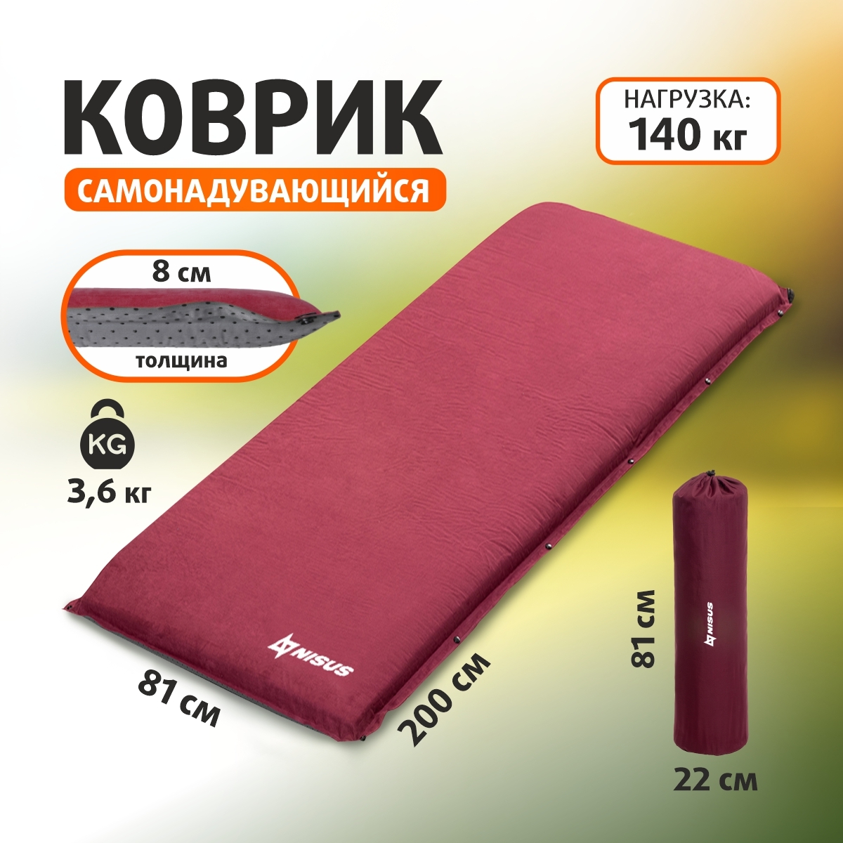 Коврик самонадувающийся 200x81x8 (NA-008) NISUS