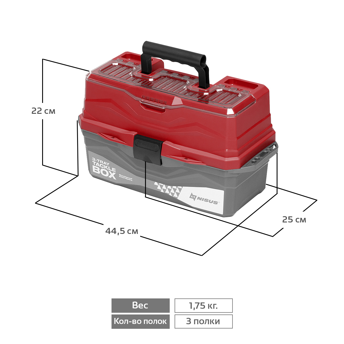 Ящик для снастей Tackle Box трехполочный NISUS красный (N-TB-3-R)