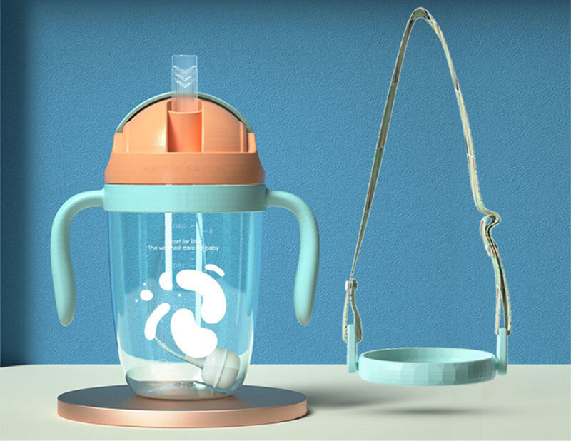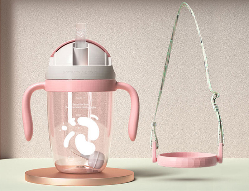 Бутылочка для кормления детей, силиконовый рот и корпус из полипропилена, 300 мл, розовый, с поясом
