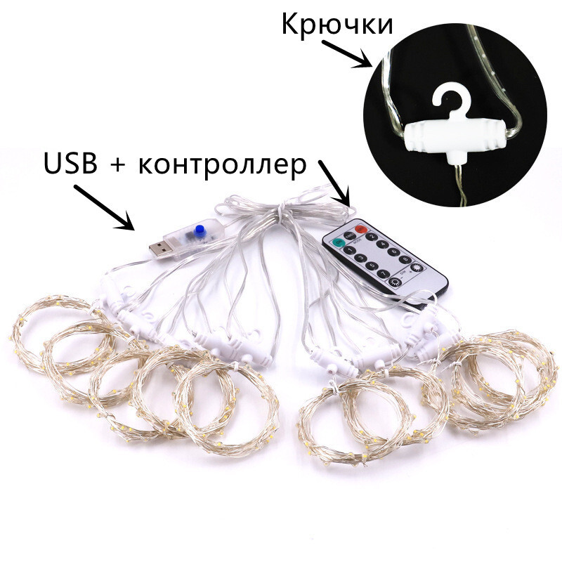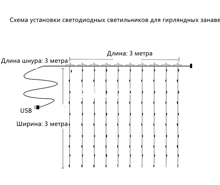 Электрогирлянда интерьерная Занавес No brand goods Светодиодная 300 ламп, 3 м, 1 шт
