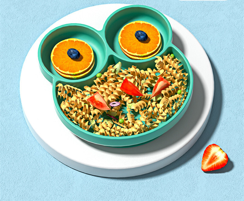 Детская секционная тарелка, силиконовая с присоской, зеленая, 18х17см