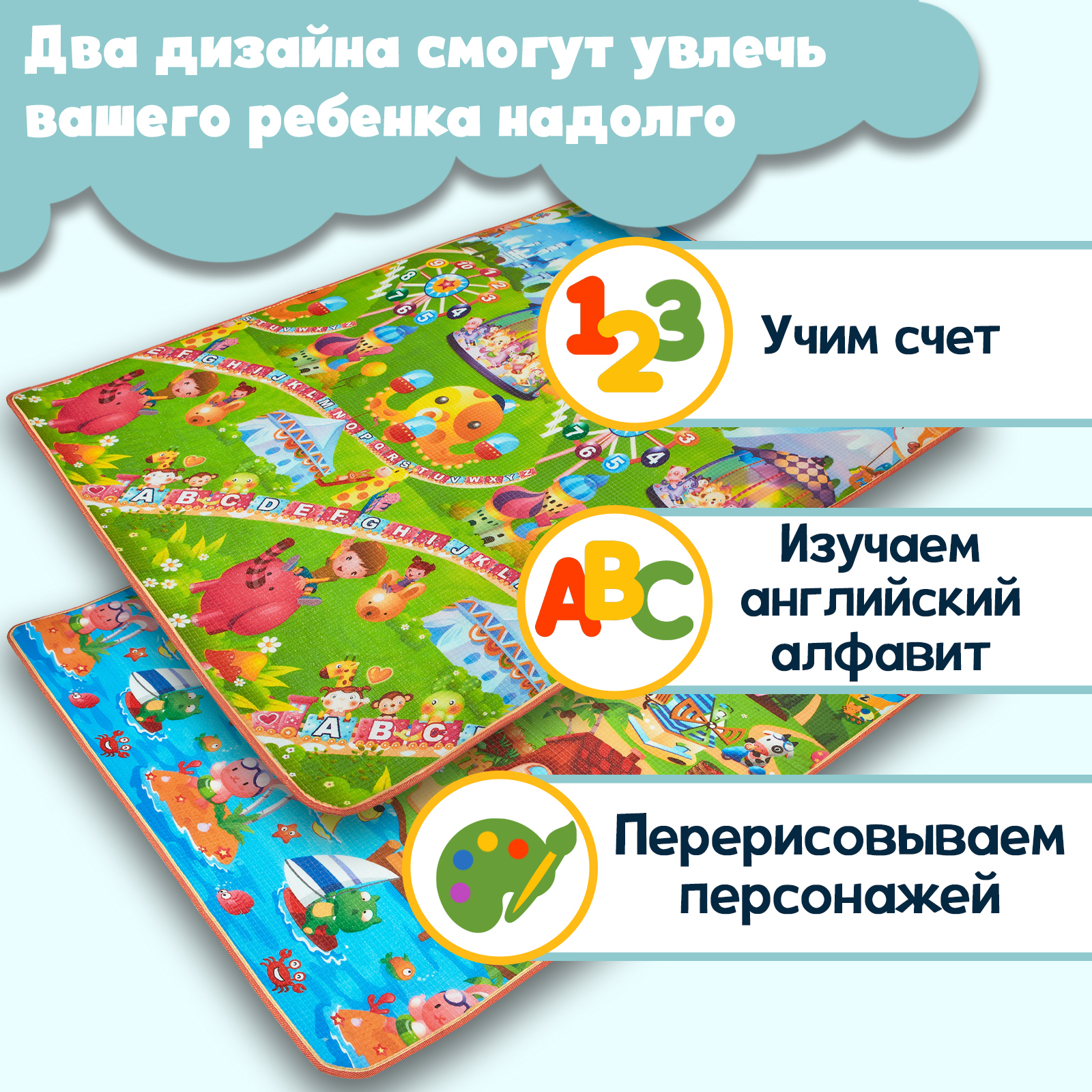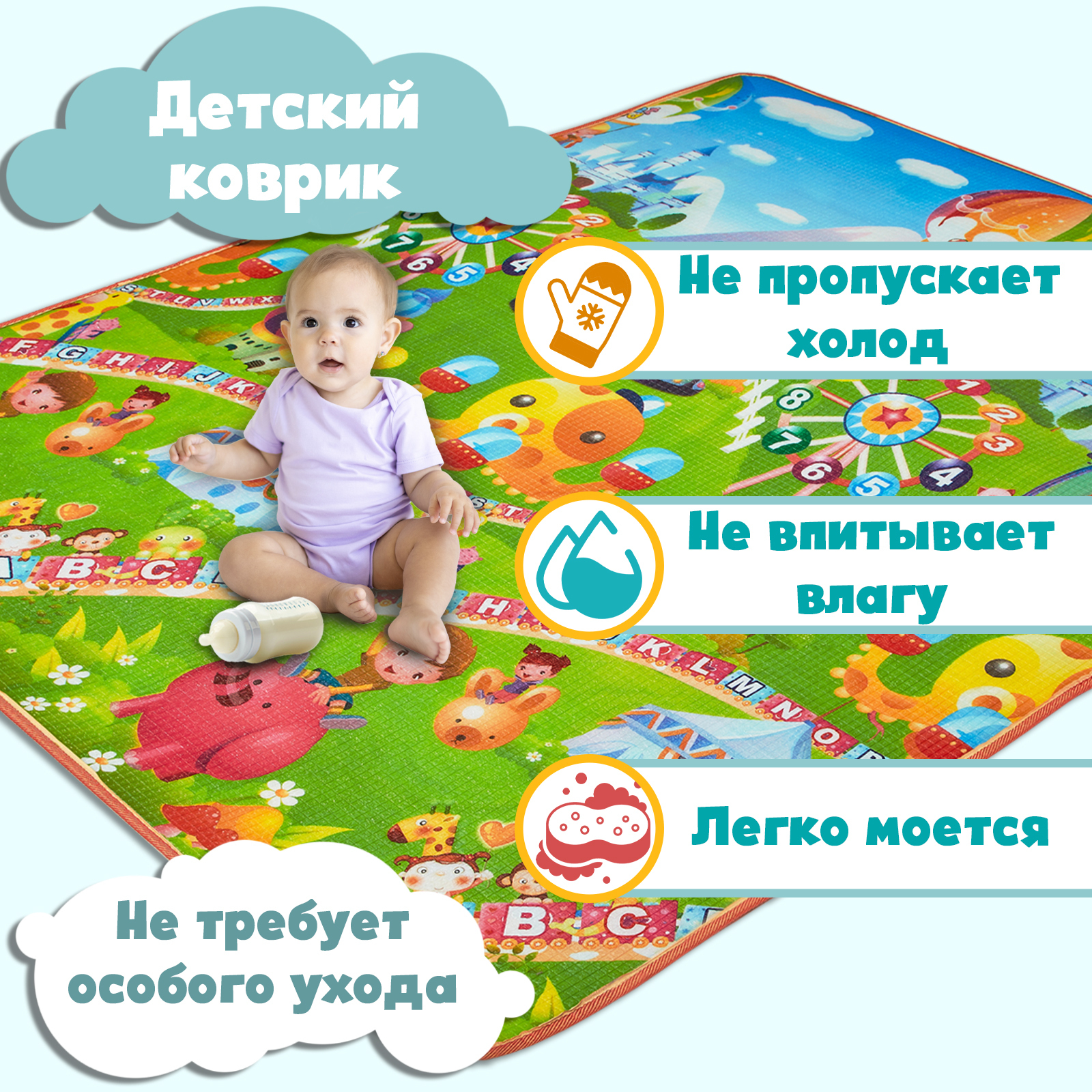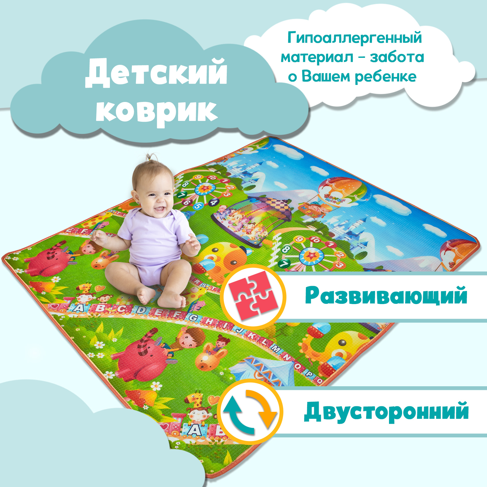 Развивающий коврик для детей / Детский коврик / Игровой коврик для малышей / Коврик для ползания детский / На подарок