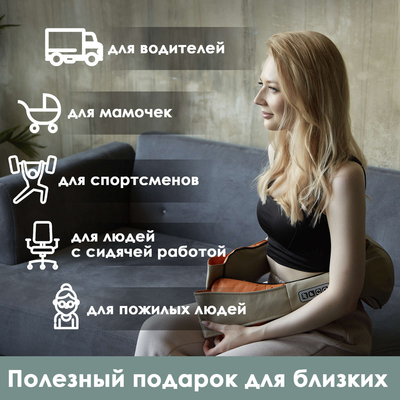 Массажная подушка для спины,шеи и плеч с подогревом/Электрический,роликовый массажер/Электромассажер