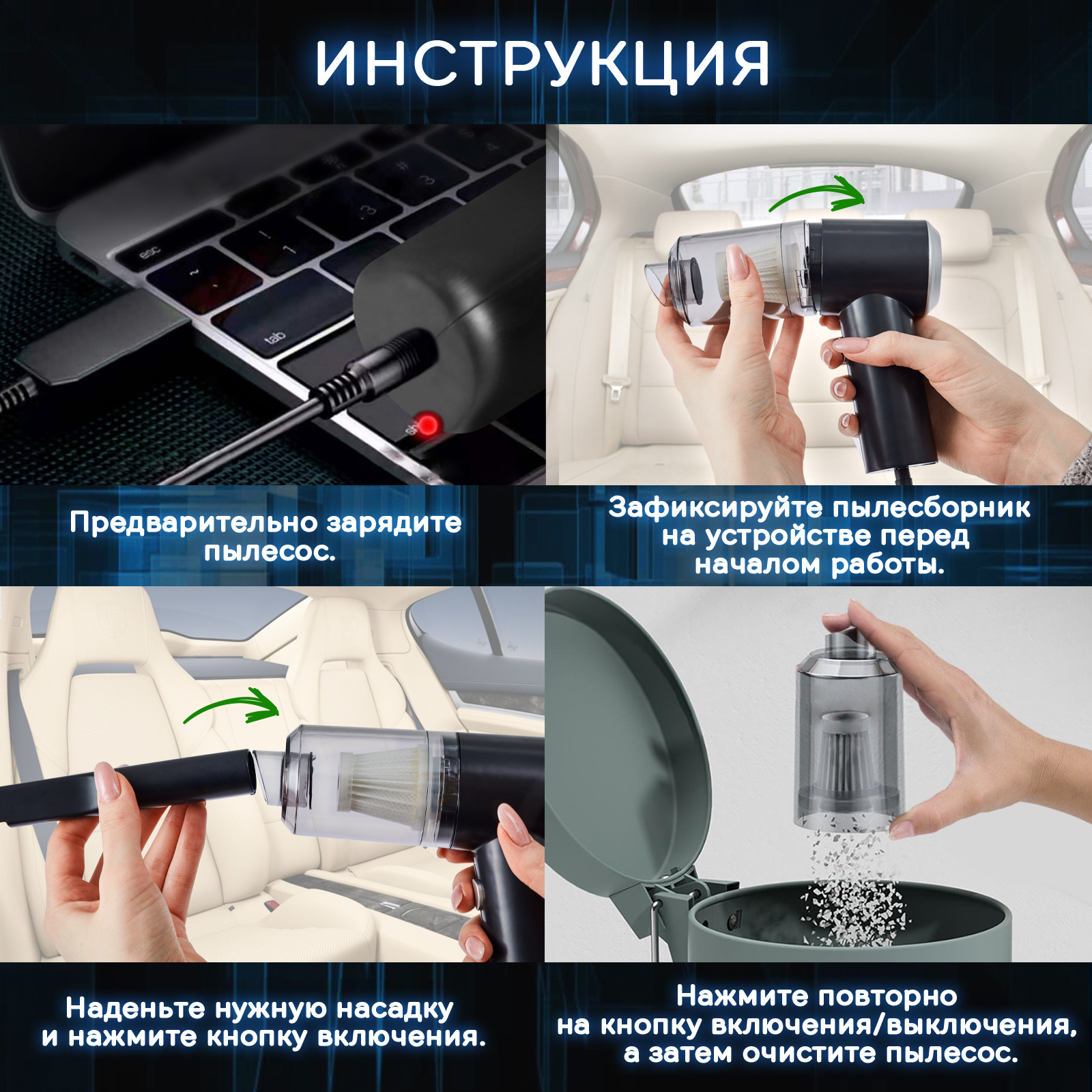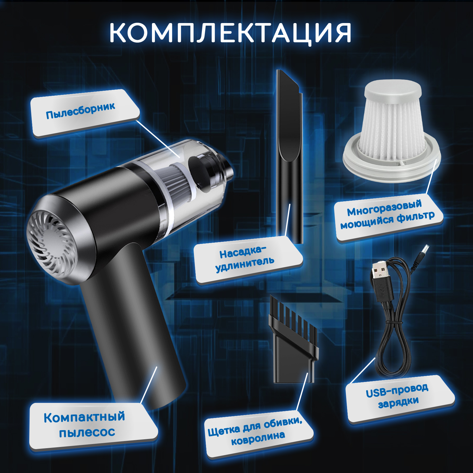 Автомобильный пылесос для очистки салона AH-3394 / Ручной пылесос для автомобиля / Автопылесос для машины / На подарок