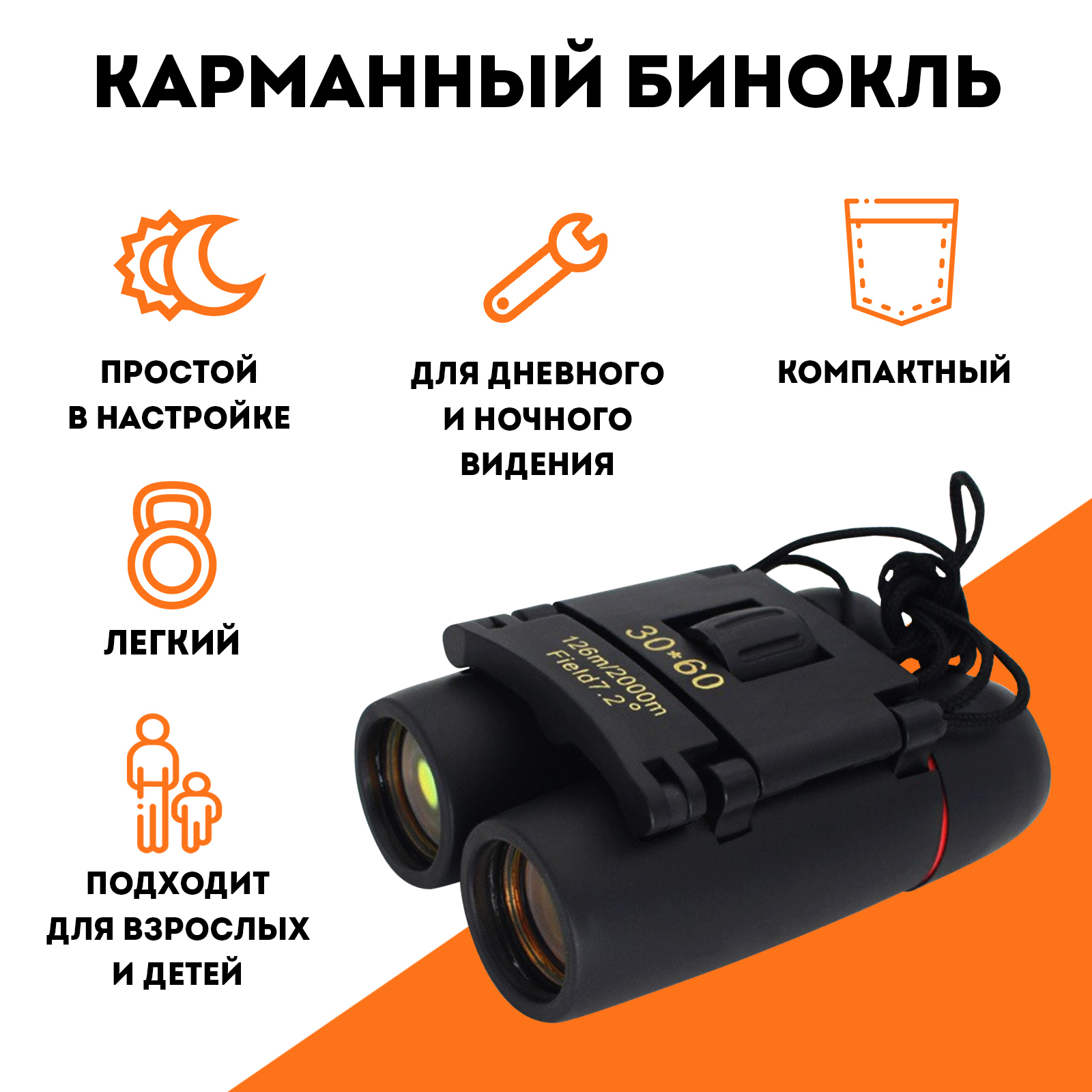 Бинокль Nobles Компактный ночного видения 30x60 / охотничий / Туристический / для охоты ночной / На подарок 60мм
