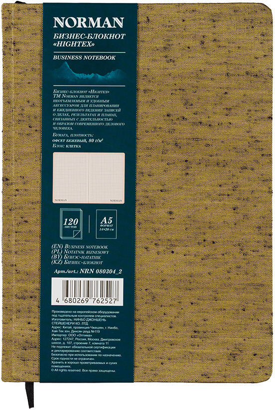 Ежедневник Norman Hightex, недатированный, 120 листов в клетку, 54584839122, золотой