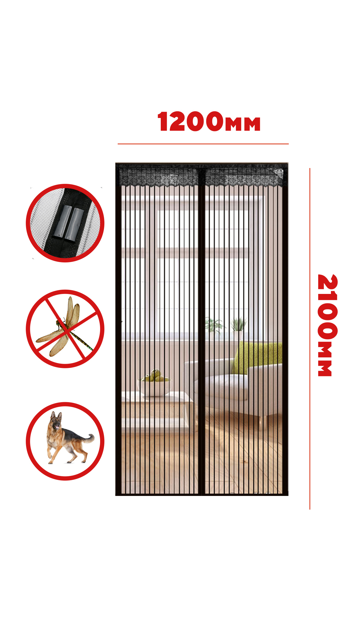 Москитная сетка на дверь на магнитах на дверь 90см x 210см