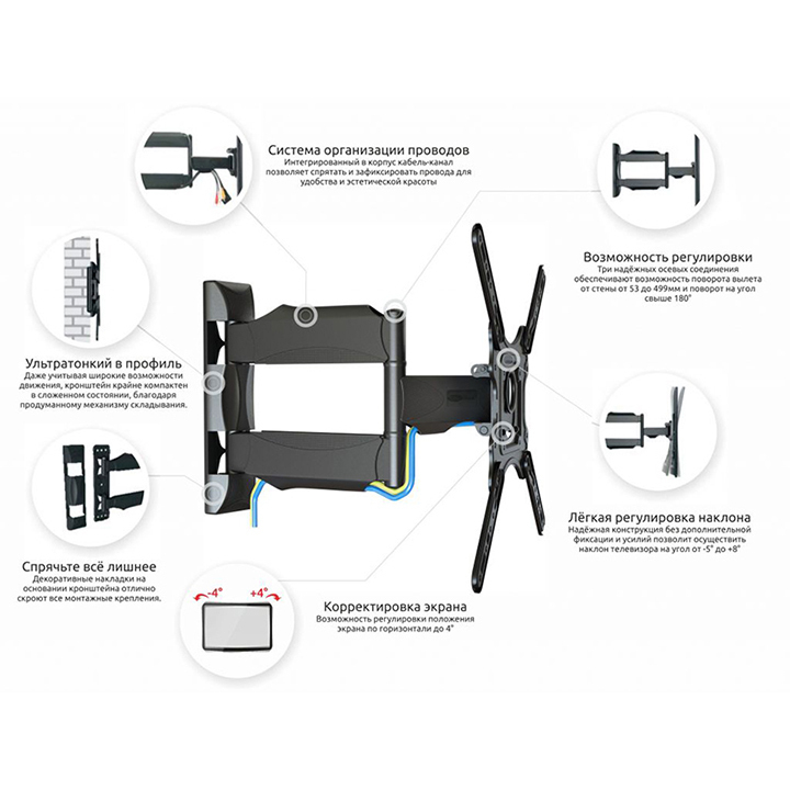 Наклонно поворотный кронштейн ПРЕМИУМ класса North Bayou NB P4 черный