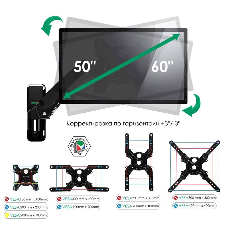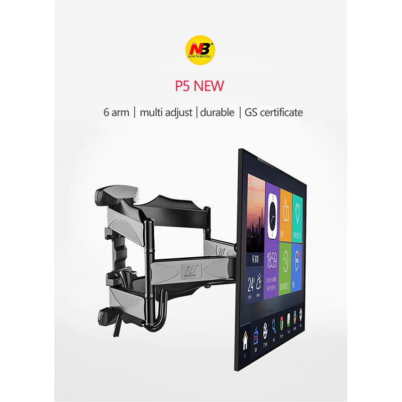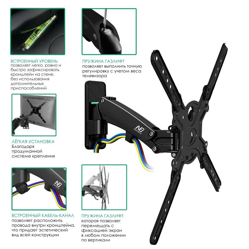 North Bayou NB P5 NEW черный наклонно поворотный двух рычажный кронштейн на стену ПРЕМИУМ класса для телевизора диагональ 32 до 60 дюймов