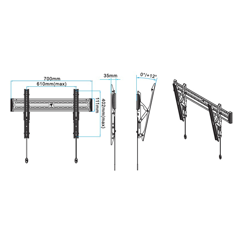Кронштейн для ТВ настенный, наклонный NB C3-T (быстросъемный, диагональ 40-65 дюймов, черный)