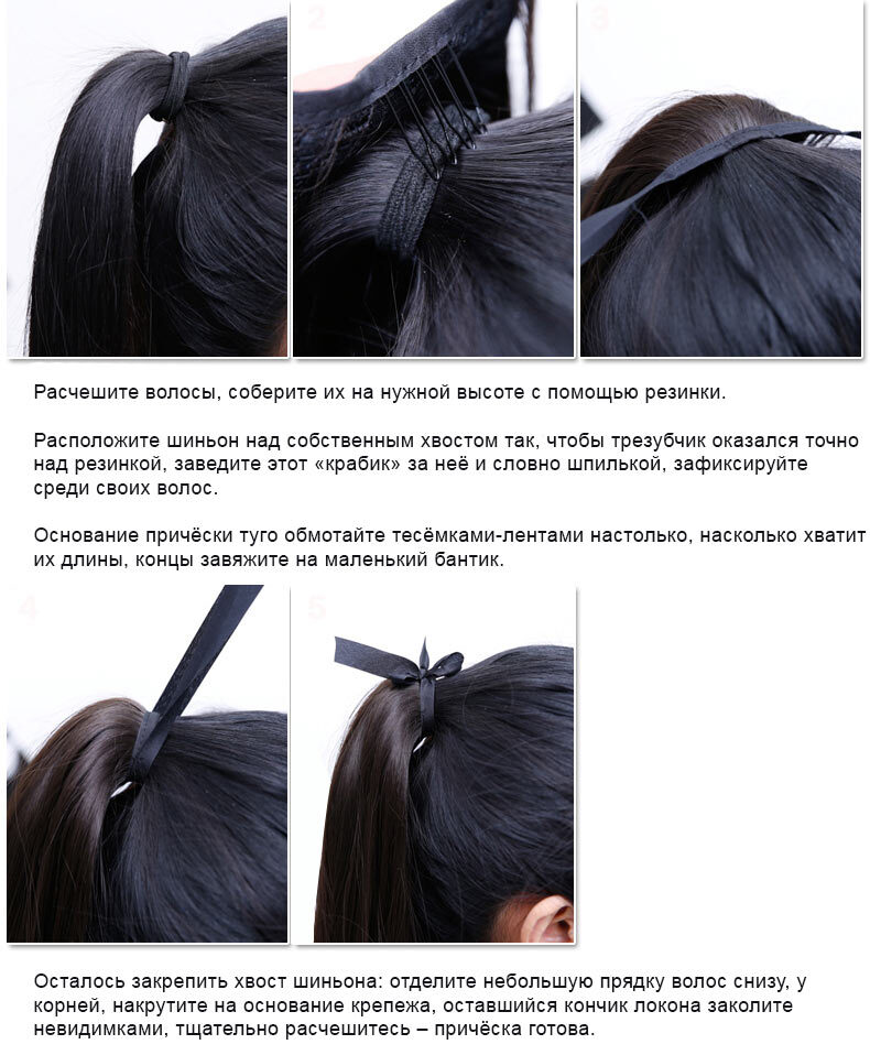Хвост для волос на ленте искусственный 55 см./120 грамм