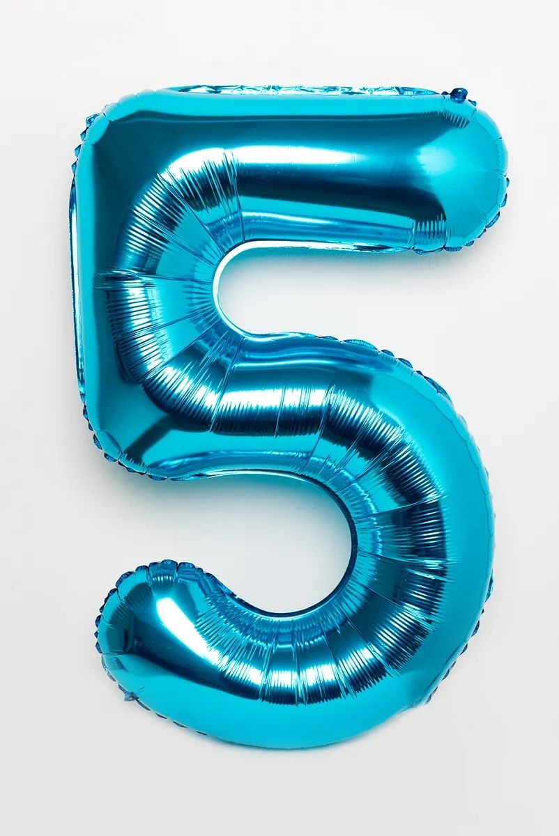 Шар фольгированный цифра "5" синий 102 сантиметра