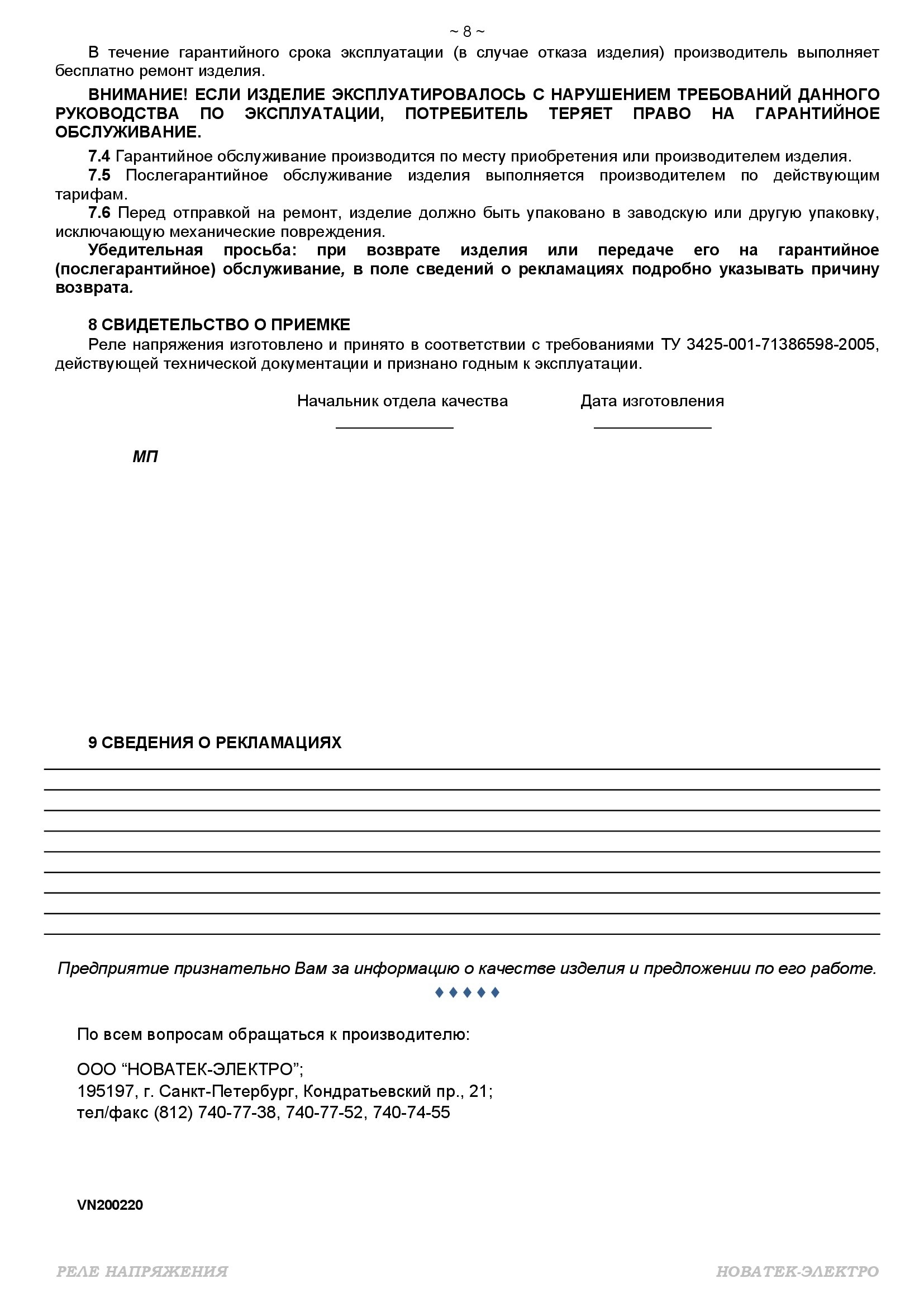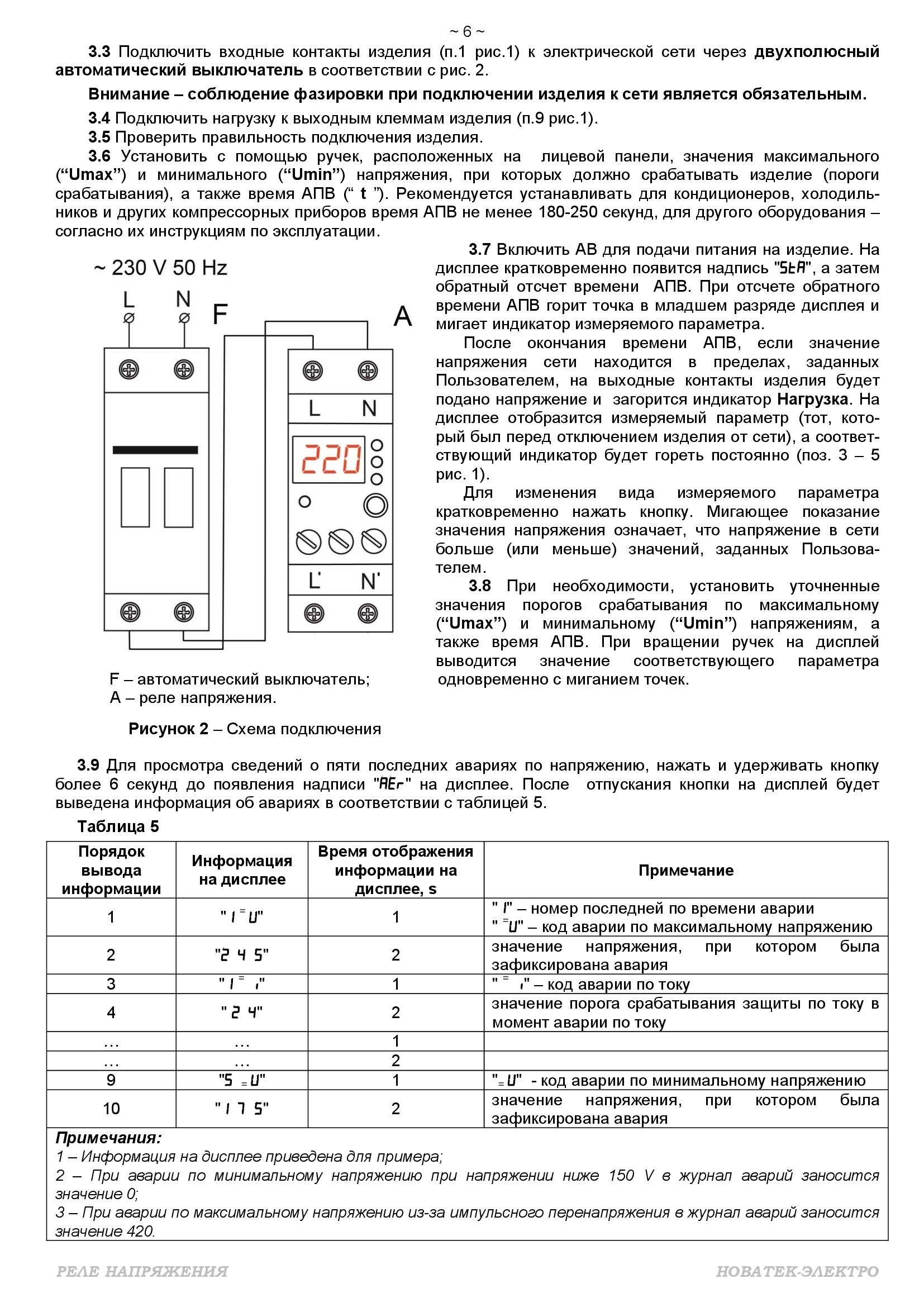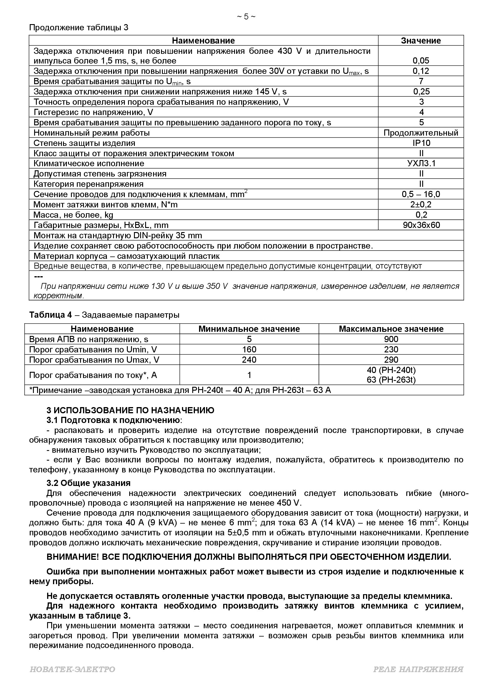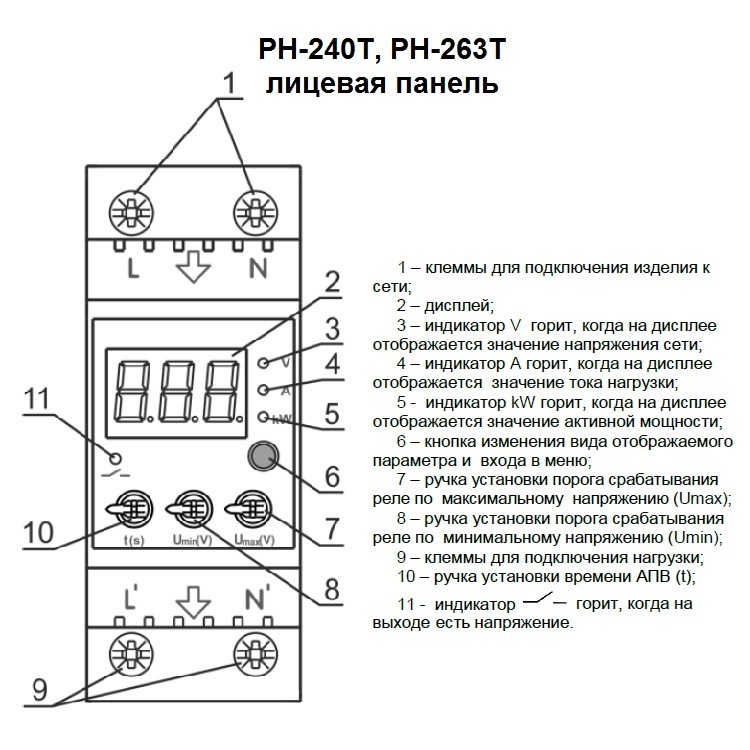 Реле контроля напряжения РН-263Т Новатек-Электро