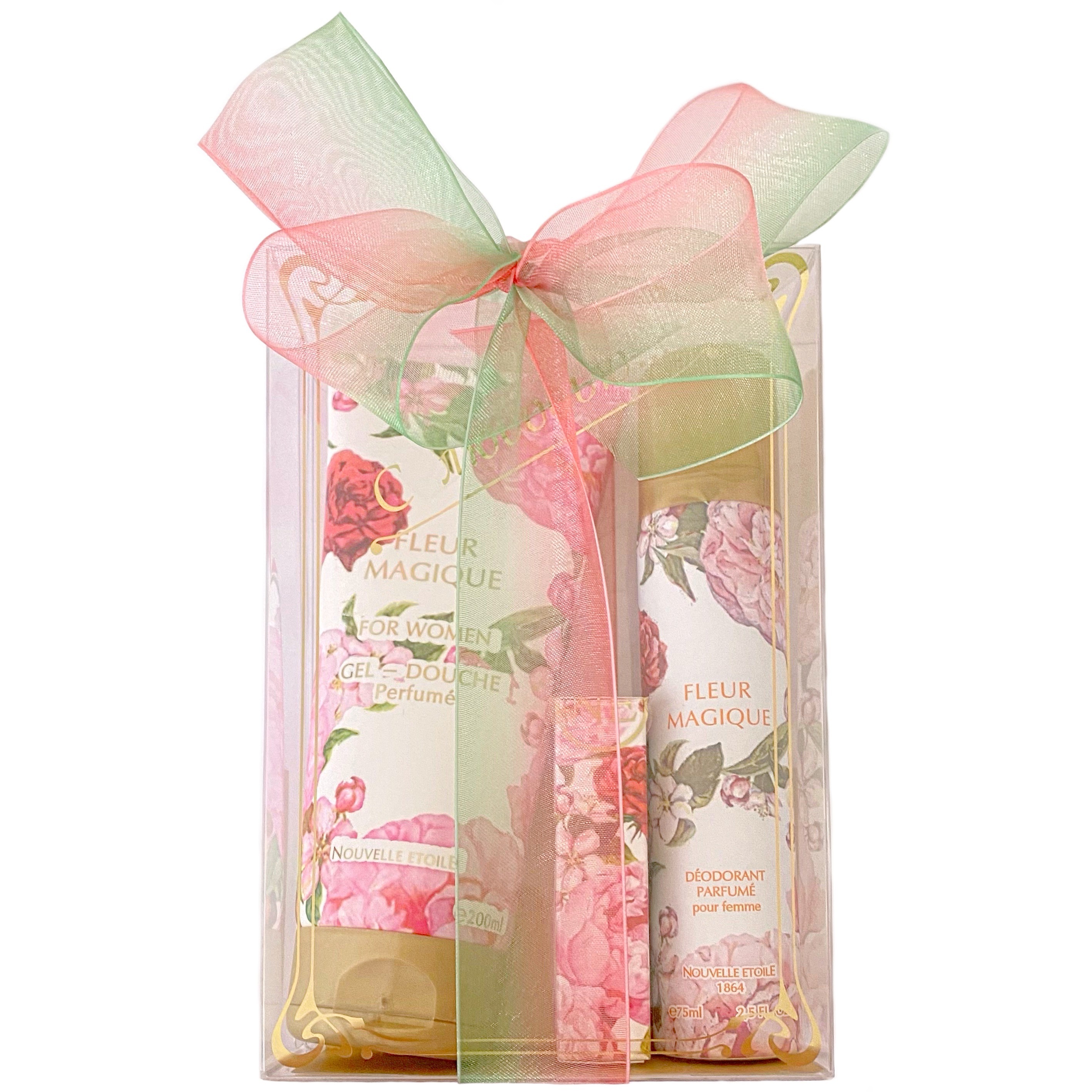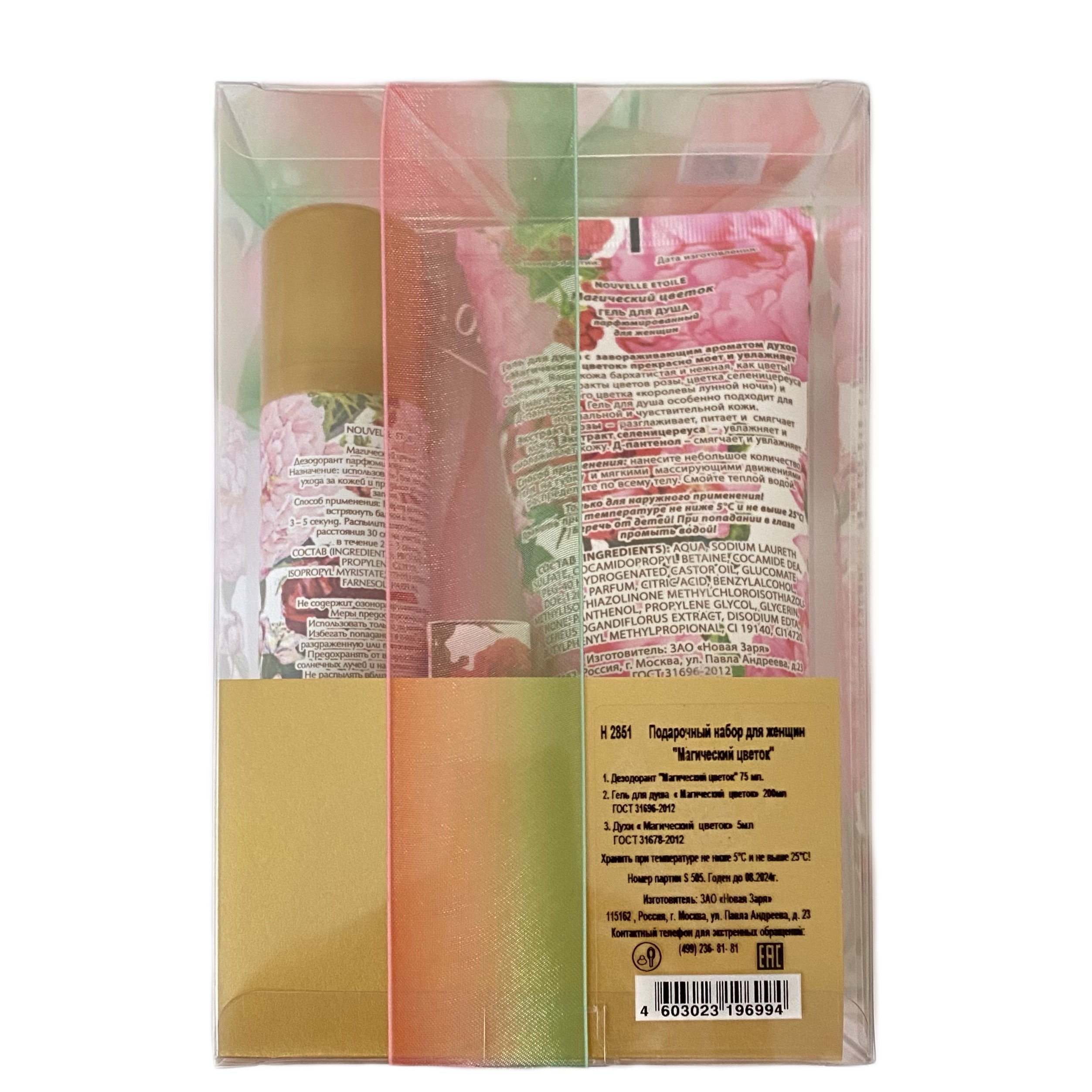 Новая Заря Набор МАГИЧЕСКИЙ ЦВЕТОК (MAGIQUE FLEUR) духи 5мл + гель д/душа 200мл + дезодорант 75мл