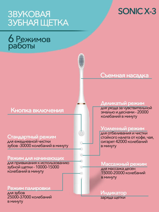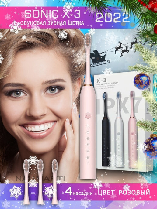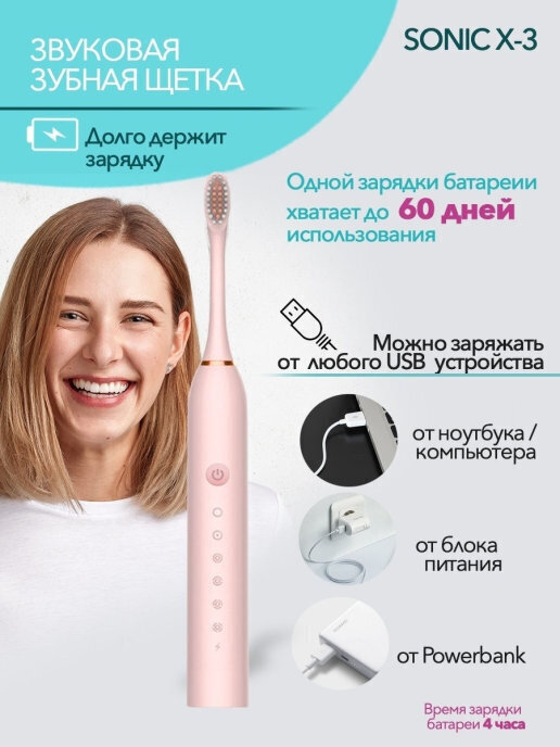 Электрическая зубная щетка НовинкиТоп Sonic Toothbrush X-3 Smarter , светло-розовый, розовый