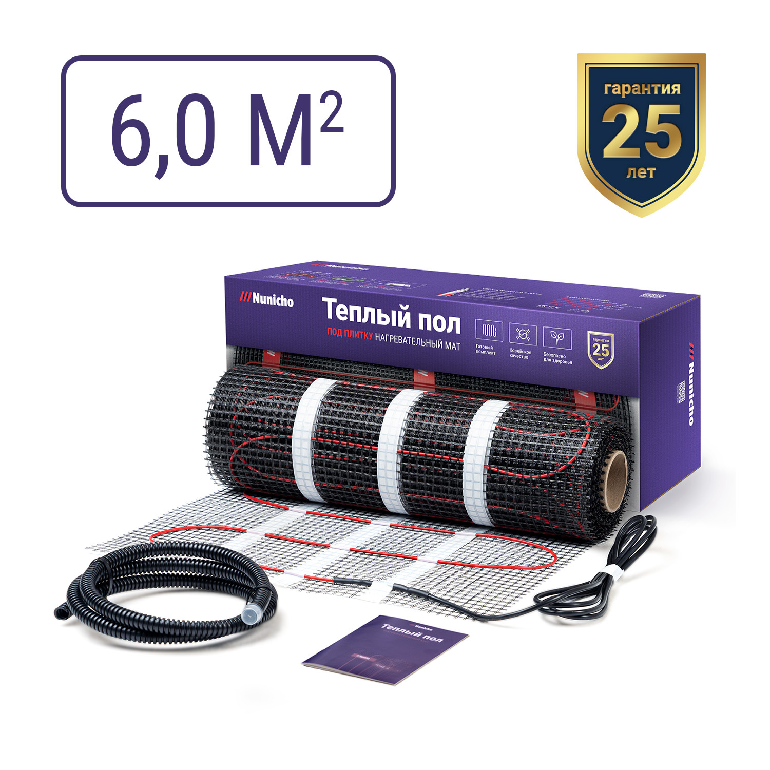 Электрический теплый пол под плитку NUNICHO 6 м2, 150 Вт/м2 двужильный экранированный нагревательный мат