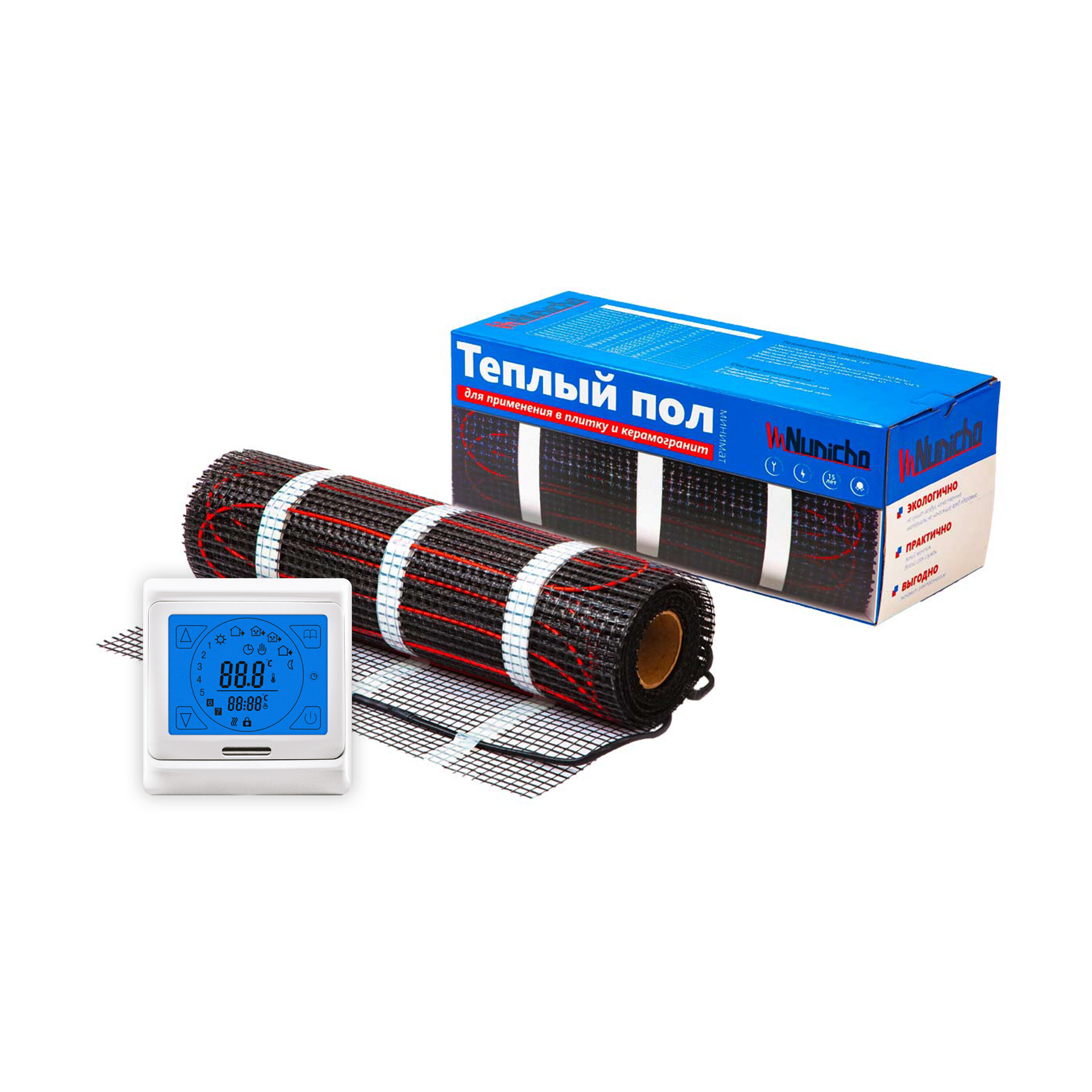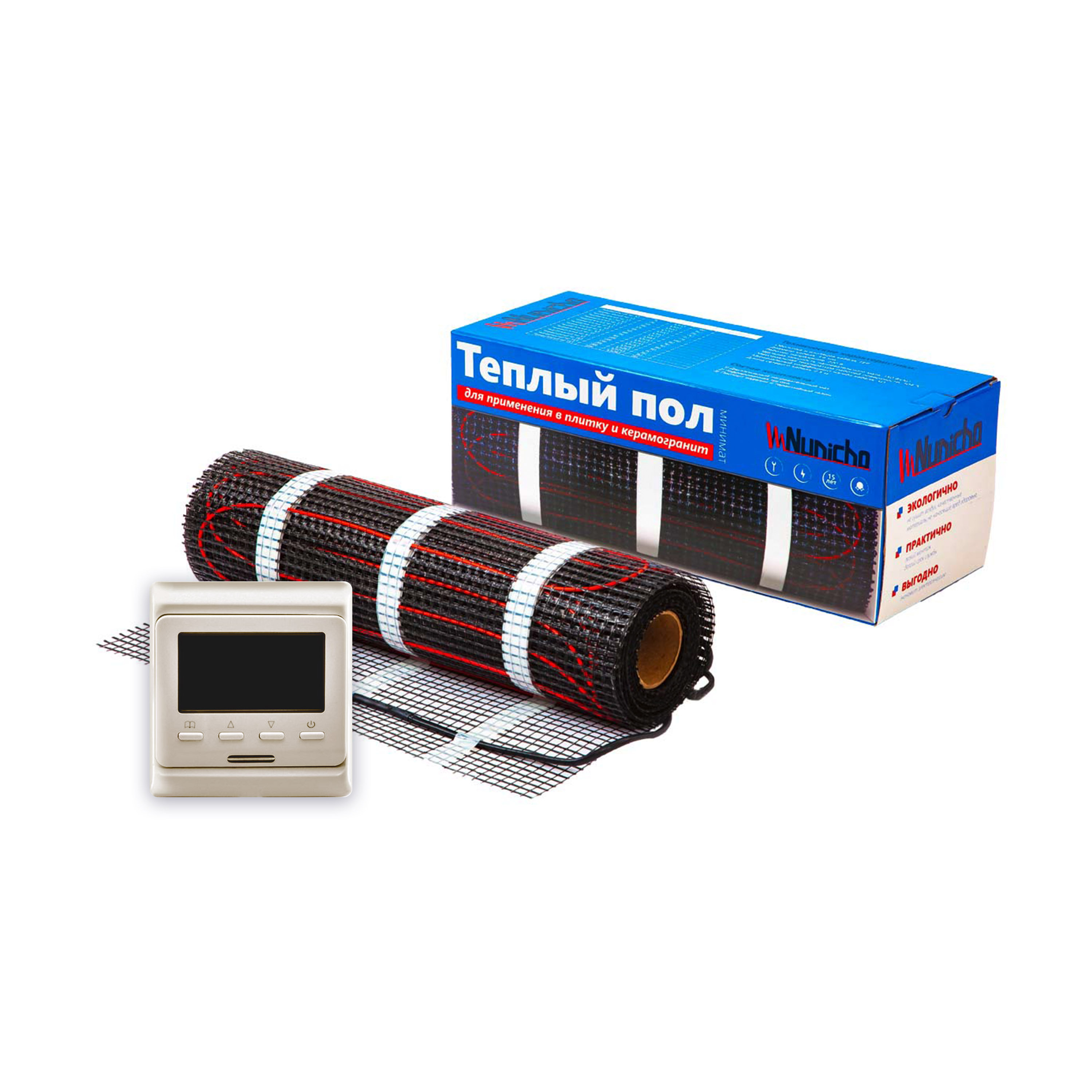 Теплый пол Nunicho 8 м2 с программируемым бежевым терморегулятором в комплекте
