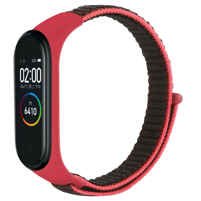 Сменный ремешок Nuobi Nylon для Xiaomi Mi Band 3 и Mi Band 4 (Красный/черный)