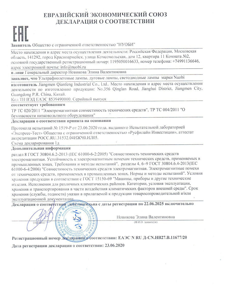 Nuobi УФ лампа бактерицидная 20W (E27) / кварцевая / ультрафиолетовая