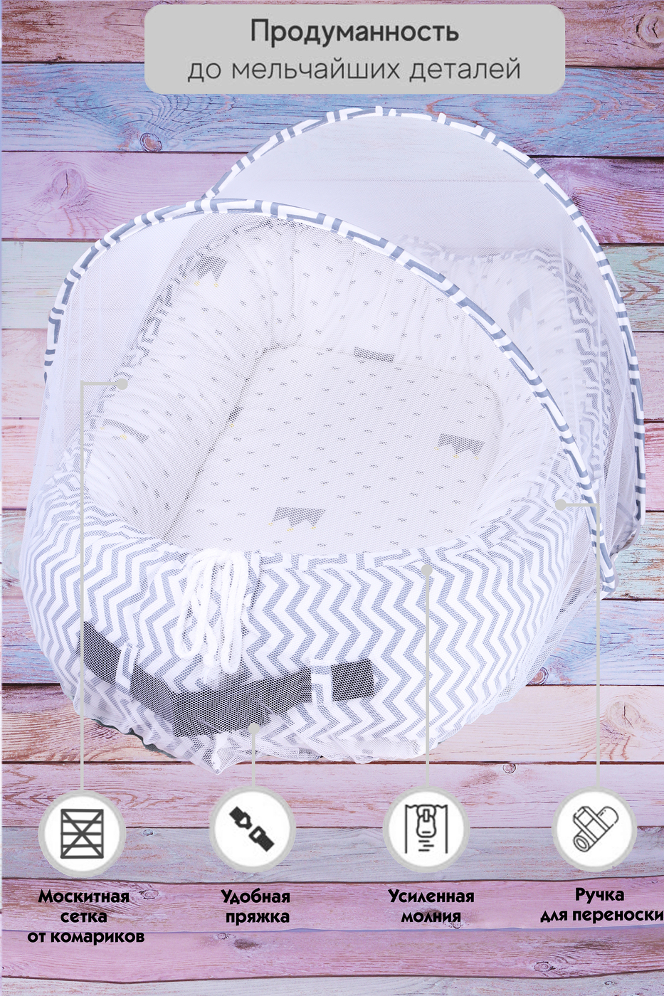 Гнездышко-Кокон для новорожденных с москитной сеткой для дома и улицы
