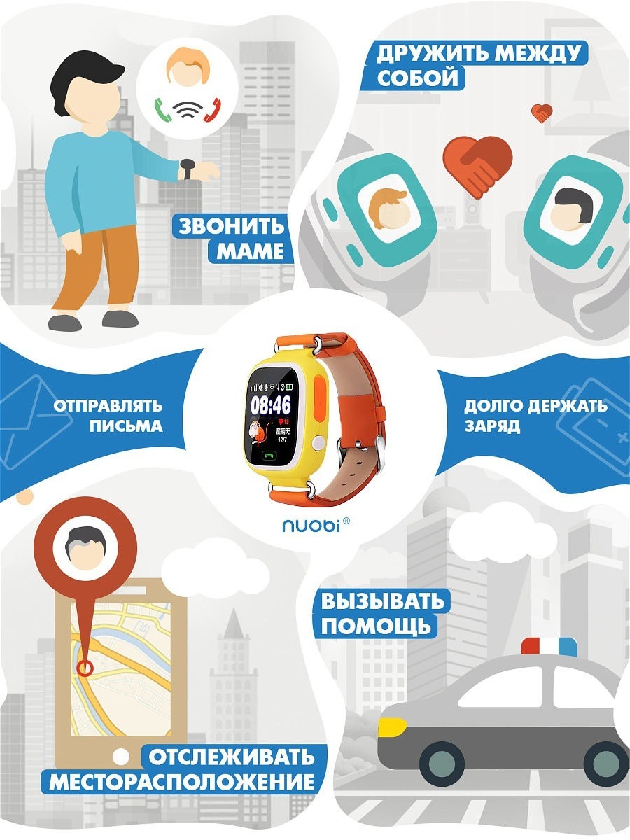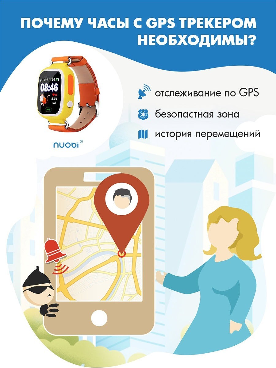 Умные часы для детей NUOBI GPS часы Q90, черный