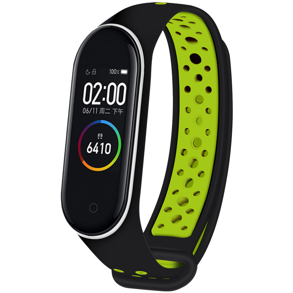 Сменный ремешок Nuobi Sport ver.1 для Xiaomi Mi Band 3 и Mi Band 4 (Черный/зеленый)