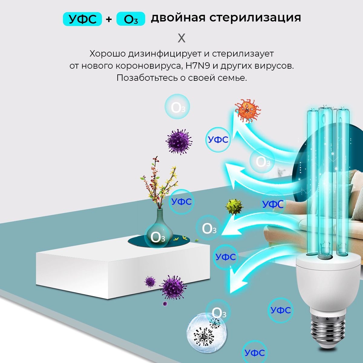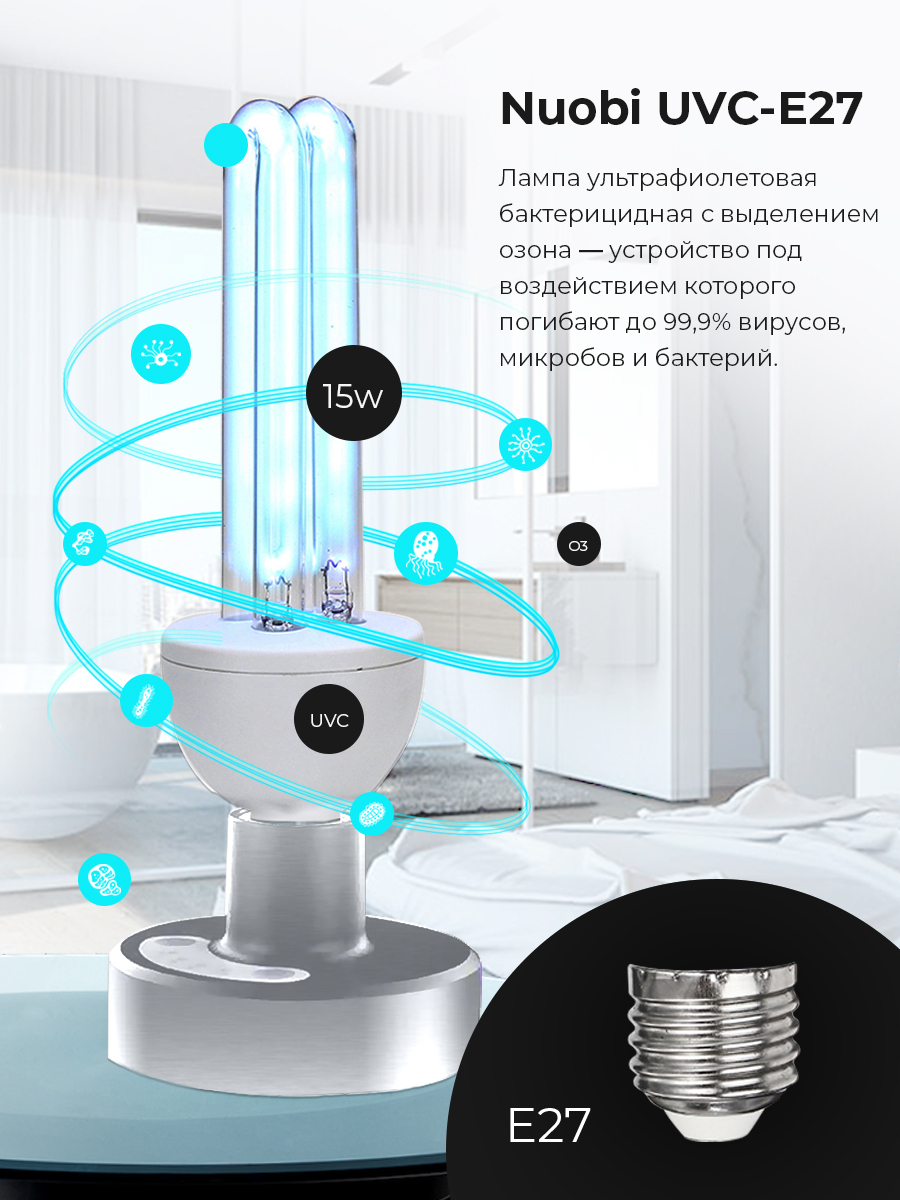 Nuobi УФ лампа бактерицидная 20W (E27) / кварцевая / ультрафиолетовая