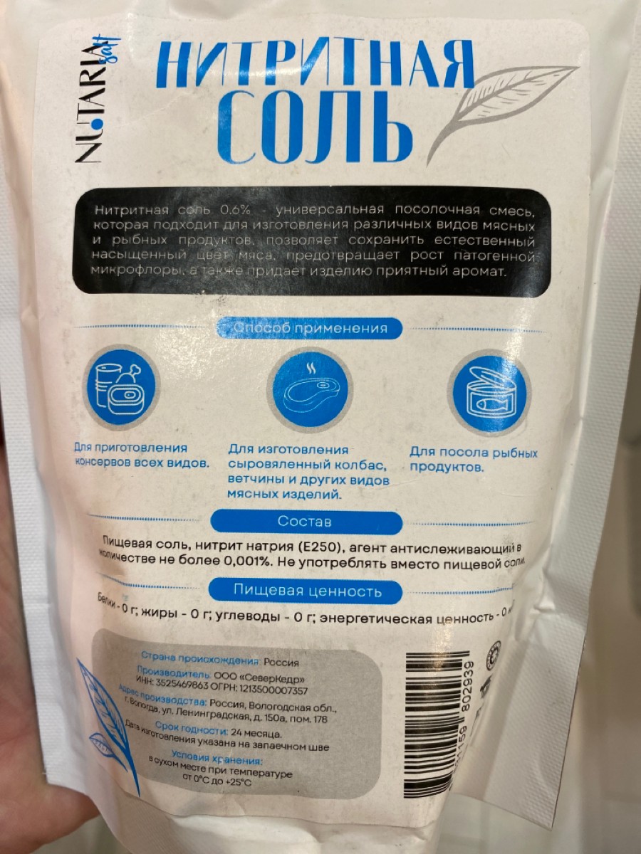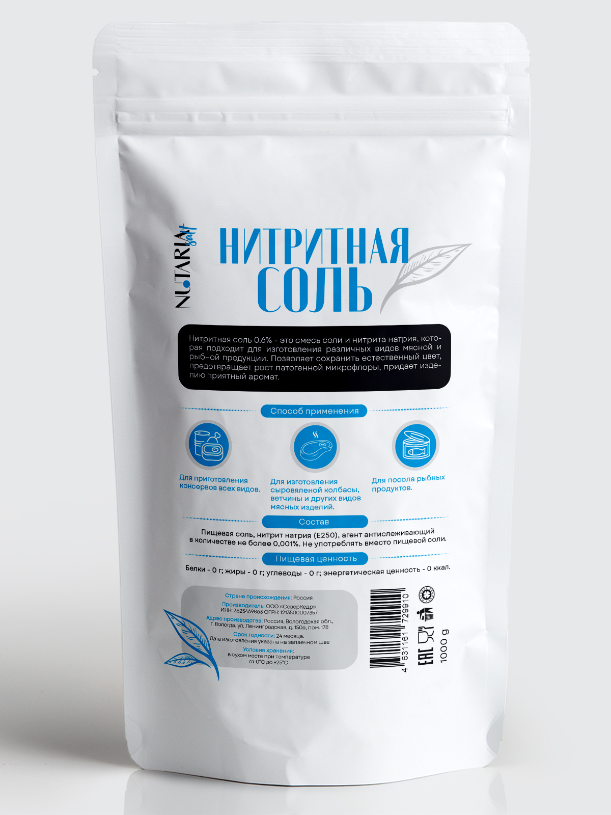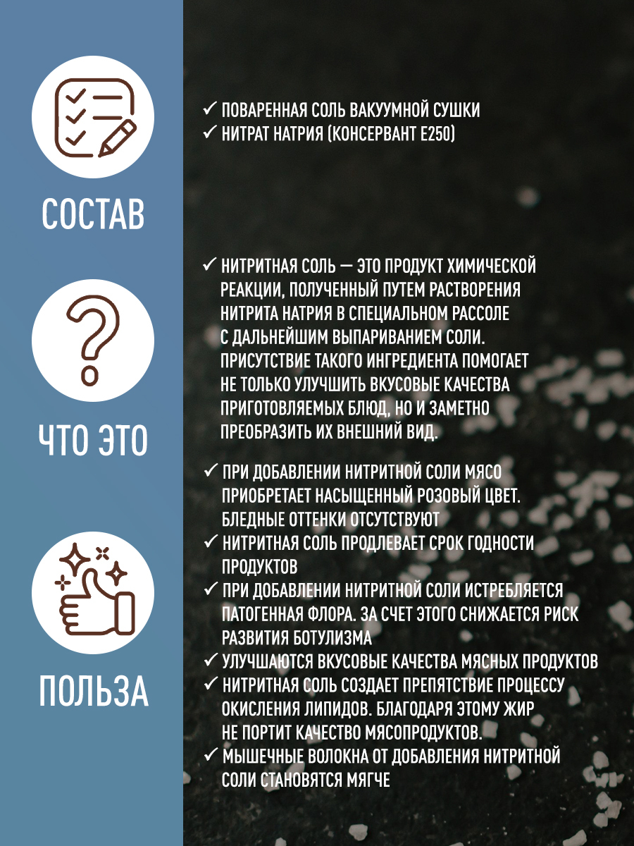 Нитритная соль 0,6%, для колбасы домашней, для мяса, пищевая, крупная, 1000 грамм