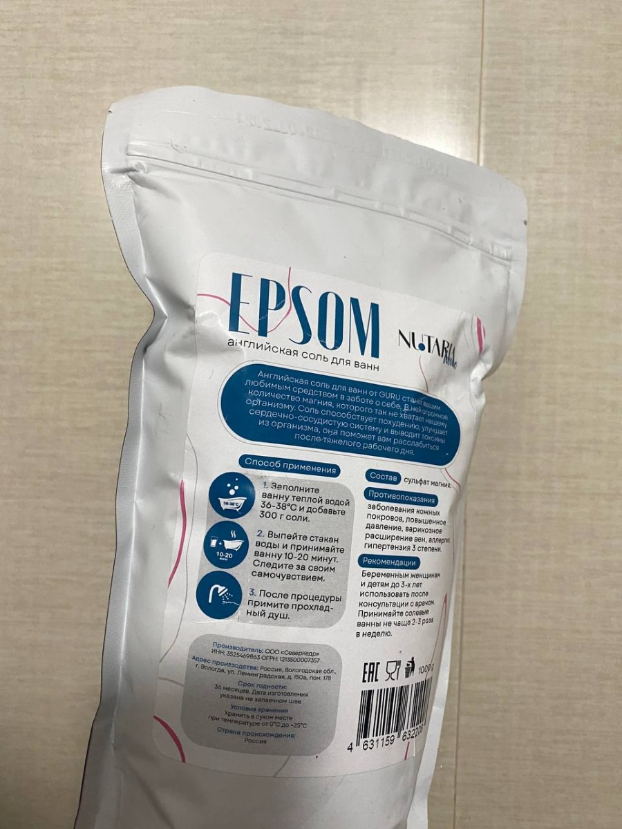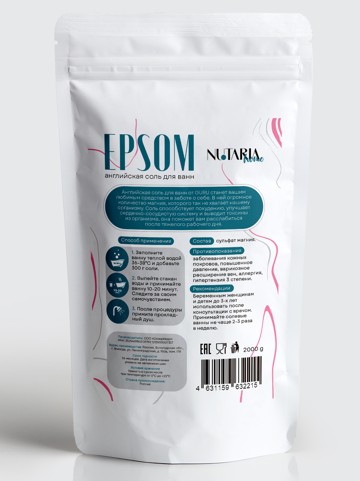 NUTARIA Английская соль для ванны с магнием, Epsom, соль для ванны морская, 2000 грамм